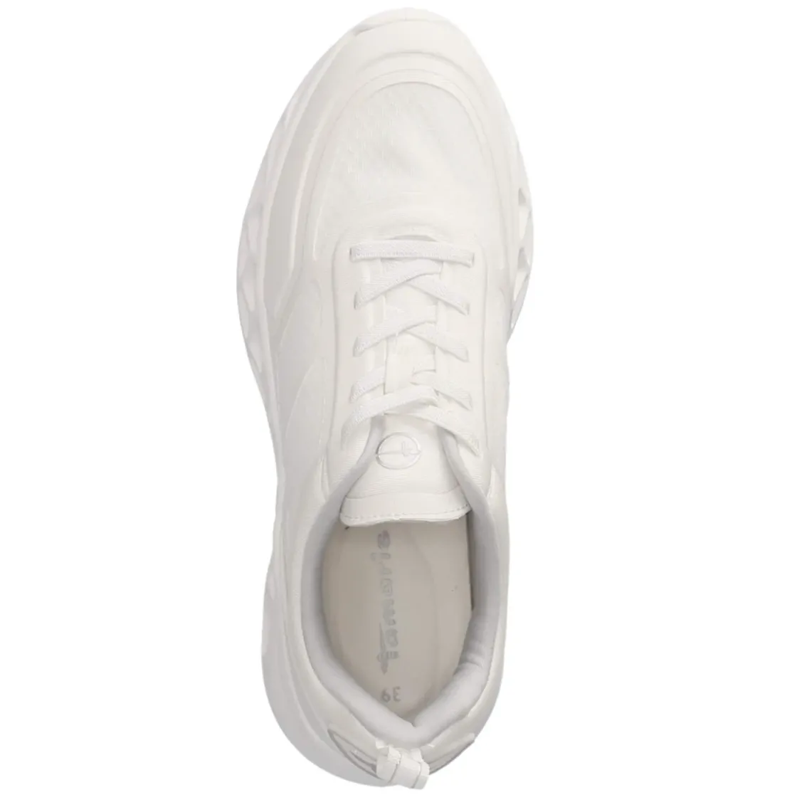 Der Low Sneaker von Tamaris in klassischem Weiß verbindet lässige Schlichtheit mit durchdachtem Komfort. Der leichte Mix aus Textil und Synthetik sorgt für angenehme Atmungsaktivität, das weiche Textilfutter und das gepolsterte Fußbett verwöhnen bei jedem Schritt. Die runde Spitze und der gepolsterte Einstieg unterstützen eine feminine, unaufgeregte Silhouette. Praktisch zeigt sich die Elastikschnürung, die den Look eines Schnürers bewahrt und dennoch schnellen Einstieg ermöglicht; eine Anziehlasche erleichtert zusätzlich das Hineinschlüpfen. Verstärkte Zehen- und Fersenpartien erhöhen die Langlebigkeit, während die flexible, rutschhemmende Laufsohle zuverlässigen Halt im Alltag liefert. Der Sneaker fällt etwas schmaler aus und setzt mit dezenten Markenlogos sportliche Akzente. Modetipp: Zu Cropped-Jeans und einem beigefarbenen Trenchcoat wirkt das strahlende Weiß besonders modern.