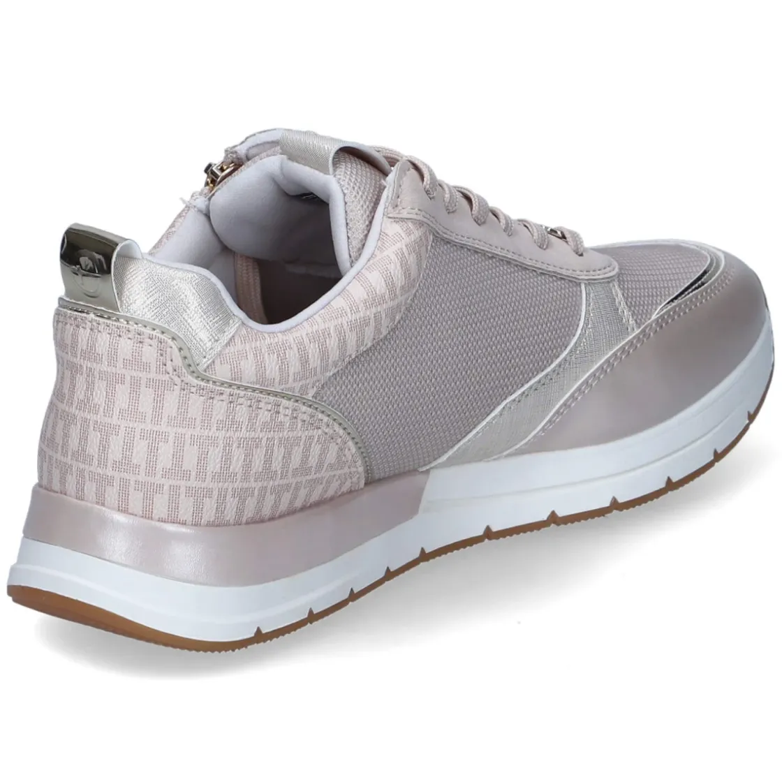 Der Low Sneaker von Tamaris in zartem Rosa verbindet sportliches Design mit einem modernen Material-Mix aus Textil und Synthetik. Das Modell ist vegan gefertigt und zeigt ein feines Markenmuster, akzentuiert von metallisch schimmernden Elementen in warmer Kupferoptik. Für angenehmen Komfort sorgen der gepolsterte Einstieg, das leichte Textilfutter und ein komfortables, herausnehmbares Wechselfußbett. Die Kombination aus Schnürung und bequemer Reißverschlusseinstieg erleichtert das An- und Ausziehen, zwei Anziehlaschen bieten zusätzliche Unterstützung. Eine runde Spitze sowie ein verstärkter Zehen- und Fersenbereich gewährleisten Schutz im Alltag, die flexible, rutschhemmende Laufsohle sorgt für sicheren Halt. Größenhinweis: fällt kleiner aus. Modetipp: Zu Creme- oder Sandtönen sowie hell gewaschenem Denim entsteht ein frischer Look, den Roségoldschmuck stilvoll aufgreift.