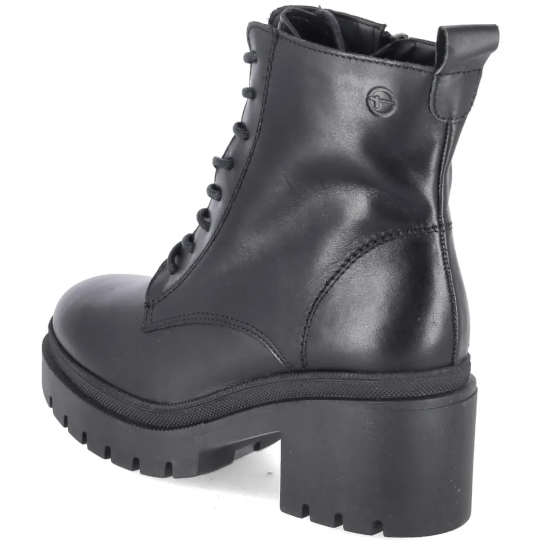 Der Tamaris Schnürboot in klassischem Schwarz verbindet urbane Eleganz mit verlässlichem Komfort. Das Obermaterial aus langlebigem Echtleder zeigt eine glatte, edle Oberfläche und wird durch eine verstärkte Ferse und eine praktische Anziehlasche ergänzt. Für bequemes An- und Ausziehen sorgt die Kombination aus Schnürung und seitlichem Reißverschluss, während ein gepolstertes Fußbett und die rutschfeste Profilsohle angenehmen Halt im Alltag bieten. Der 7,5 cm hohe Blockabsatz steht stabil, das kleine Plateau von ca. 3 cm entlastet den Fuß zusätzlich. Mit runder Schuhspitze, normaler Passform und einer Decksohle aus Textil & Synthetik überzeugt der Damen-Boot als vielseitiger Begleiter von früh bis spät. Modetipp: Zu Midirock und Strickpullover entsteht ein moderner City-Look, akzentuiert durch einen strukturierten Wollmantel.