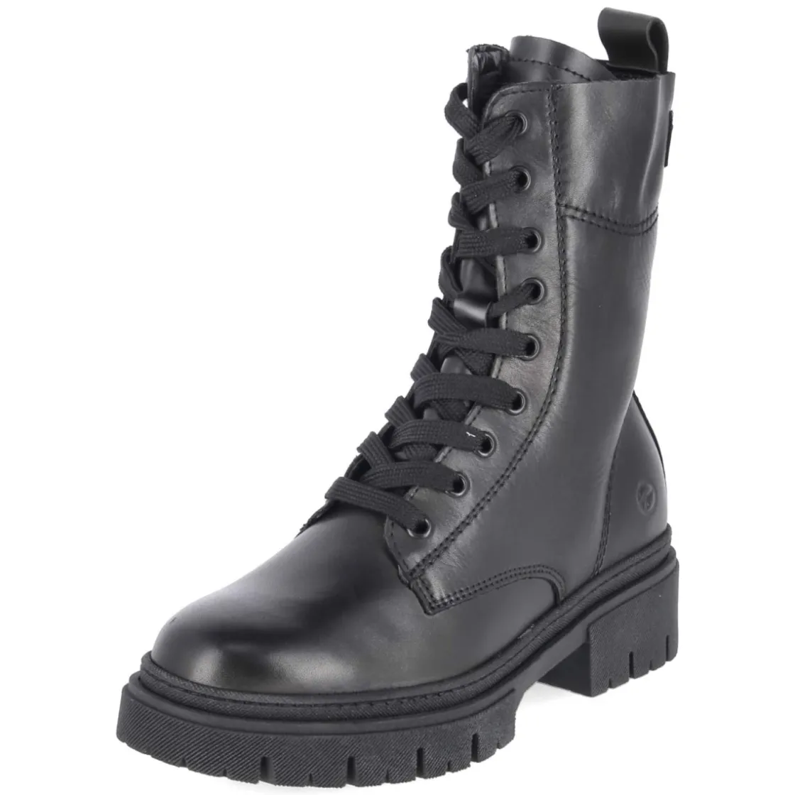 Diese Schnürboots von Tamaris verbinden urbanen Look mit zuverlässigem Komfort. Der robuste Material-Mix aus Leder und Synthetik erhält durch die schwarze Farbe ein zeitloses Finish, während der 4,5 cm hohe Blockabsatz Stabilität schenkt und die Silhouette dezent streckt. Schnürsenkel und seitlicher Reißverschluss erleichtern das An- und Ausziehen und sorgen zugleich für eine passgenaue Regulierung. Ein leichtes Futter wärmt an kühlen Tagen, die textile Decksohle unterstützt den Fuß angenehm. Mit runder Kappe, verstärktem Fersenbereich und flexibler, rutschfester Profilsohle gelingen entspannte Schritte auf wechselndem Untergrund. Der Größenhinweis fällt normal aus, wodurch die Wahl der üblichen Größe unkompliziert ist. Modetipp: Mit Cropped-Jeans, grobem Strickpullover und langem Wollmantel entsteht ein moderner City-Look mit klaren Linien.