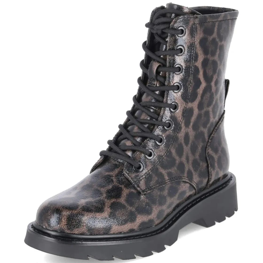 Die Schnürstiefeletten von Tamaris vereinen markantes Design und hohen Komfort. Der braune Animal Print mit feinem Leopardmuster setzt ein modisches Statement, während der 4 cm hohe Blockabsatz und die runde Spitze für entspanntes Gehen sorgen. Das Obermaterial aus Textil und die textile Decksohle umschmeicheln den Fuß, das gepolsterte Fußbett entlastet bei jedem Schritt. Dank Schnürsenkeln und zusätzlichem Reißverschluss gelingt der Einstieg bequem, die verstärkte Ferse gibt Stabilität. Die rutschfeste Profilsohle bietet zuverlässigen Halt, das leichte Futter wärmt angenehm an kühlen Tagen. Mit Schafthöhe ca. 17 cm und Umfang ca. 24 cm sitzt der Schuh sicher am Knöchel und fällt normal aus. Aus veganen Materialien gefertigt, ohne Kompromisse bei Stil und Tragegefühl. Modetipp: Besonders wirkungsvoll zu Straight-Leg-Jeans in Dunkelblau und einem camelfarbenen Wollmantel, dazu ein schmaler Gürtel im Leo-Detail.