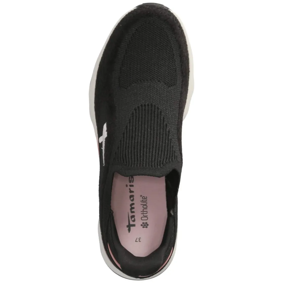 Der schnürbare Slipper von Tamaris vereint sportliche Leichtigkeit mit dezentem Chic. Schwarzes Obermaterial aus Textil und Synthetik wird von zartrosa Akzenten und einem weiß gestickten Logo belebt, die runde Spitze gibt den Zehen angenehm Raum. Das komfortable Wechselfußbett aus Textil lässt sich bei Bedarf gegen eigene Einlagen tauschen, während die gepolsterte Ferse sanfte Dämpfung bei jedem Schritt schenkt. Eine flexible, rutschfeste Laufsohle sorgt auf glatten Böden für zuverlässigen Halt, der unkomplizierte Einstieg macht das An- und Ausziehen denkbar einfach. Das Modell fällt normal aus und richtet sich an Damen, die Wert auf Komfort und Stil legen. Die komplett veganen Materialien runden das durchdachte Design zeitgemäß ab. Modetipp: Mit cropped Straight-Jeans, lockerem Blazer und feinen Söckchen in Zartrosa entsteht ein moderner City-Look mit harmonischem Farbspiel.