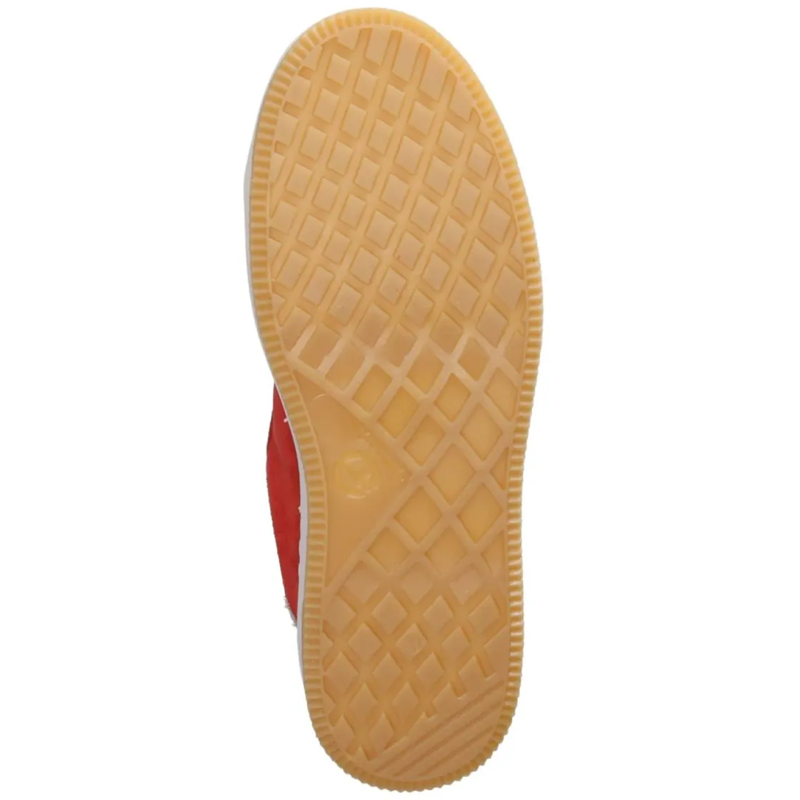 Mit sattem Rot und weißfarbenen Glattleder-Akzenten setzt der Tamaris Sneaker einen frischen Akzent im Alltag. Das Obermaterial aus robustem Echtleder in weichem Rauleder-Finish sorgt zusammen mit der runden Schuhspitze und klassischen Schnürsenkeln für einen sympathischen Look. Komfort steht im Mittelpunkt: gepolsterter Einstieg, textiler Decksohle und ein gepolstertes, herausnehmbares Wechselfußbett umschließen den Fuß angenehm. Der verstärkte Zehen- und Fersenbereich gibt Halt, während die flexible, rutschhemmende Laufsohle verlässlichen Grip bietet. Feine Ziernähte und dezente Markendetails runden das Design ab. Größenhinweis: fällt normal aus, ideal für Damen in der Zielgruppe Erwachsene, die einen vielseitigen Sneaker suchen. Modetipp: Besonders harmonisch wirkt der Rotton zu cremefarbener Wide-Leg-Jeans und Off-White-Lederjacke, dazu filigraner Goldschmuck für einen eleganten Kontrast.