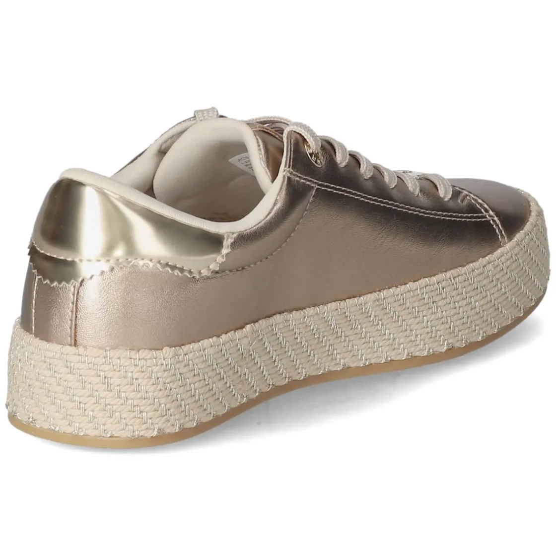 Tamaris Sneaker Low in Gold vereint elegante Optik mit alltagstauglichem Komfort. Das Synthetik-Obermaterial zeigt einen feinen Metallic-Schimmer, der vom Sohlenrahmen in Flechtoptik mit goldfarbenen Akzenten stilvoll aufgenommen wird. Runde Schuhspitze und klassische Schnürung verleihen eine zeitlose Silhouette. Verstärkte Ferse und gepolstertes Fußbett bieten zuverlässige Unterstützung, während die flexible, rutschhemmende, griffige Laufsohle sicheren Tritt im urbanen Alltag ermöglicht. Die textile Decksohle sorgt für angenehmes Fußklima, die Passform fällt normal aus. Aus veganen Materialien gefertigt, punktet das Modell mit modernem Design und Verantwortung. Dezente Markendetails runden den Auftritt ab. Modetipp: Mit einer sandfarbenen Culotte und einer feinen Strickweste das Gold akzentuieren, dazu zarte Schmucktöne für einen souveränen Day-to-Night-Look.