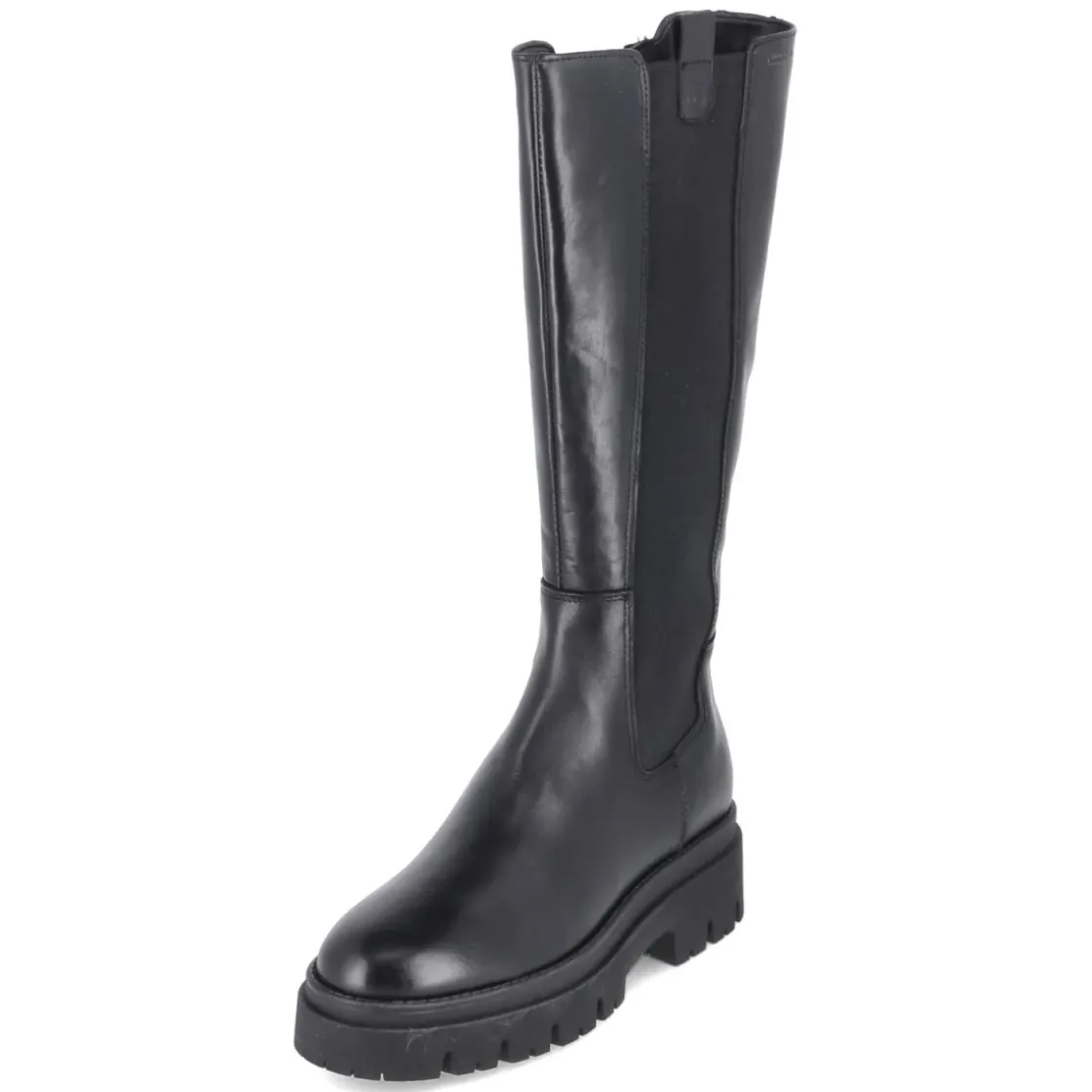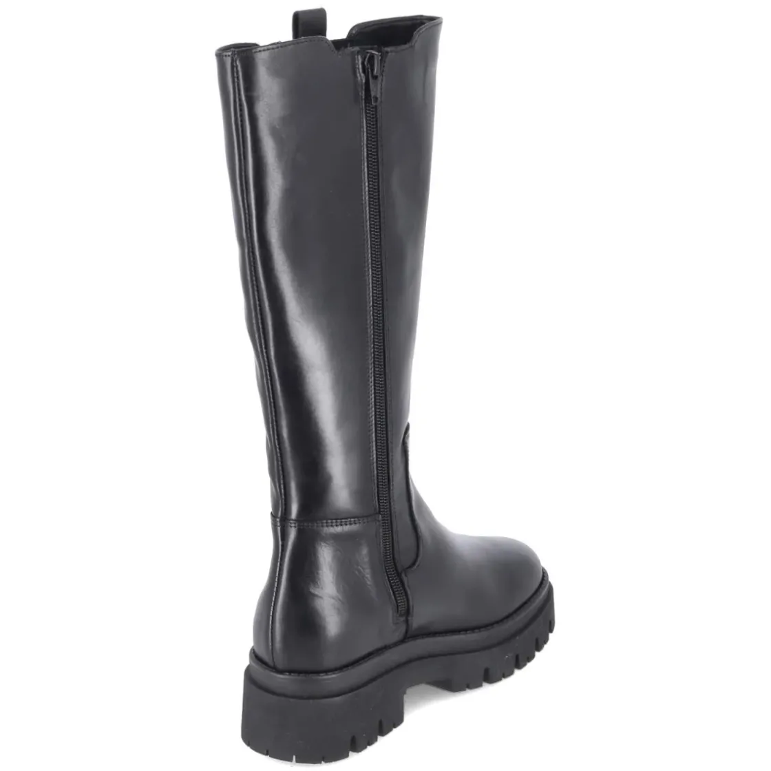 Der schwarze Stiefel von Tamaris vereint klare Linien und hohen Komfort in einem alltagstauglichen Design. Glattes, langlebiges Echtleder verleiht eine edle Anmutung, während die runde Schuhspitze und das gepolsterte Fußbett ein angenehmes Tragegefühl unterstützen. Praktisch: Der seitliche, Chelsea-ähnliche Elastikeinsatz mit Anziehlasche erleichtert das Hineinschlüpfen, der Reißverschluss sorgt für sicheren Halt. Die rutschfeste Profilsohle und der 5 cm hohe Blockabsatz bieten Stabilität, der Schaft misst ca. 35 cm in der Höhe und 36 cm im Umfang. Die Decksohle aus Textil und Synthetik unterstützt den Komfort auch bei längeren Wegen. Der Schnitt fällt normal aus und passt zu vielen Outfits. Modetipp: Zu einem Midikleid aus Strick und einem strukturierten Wollmantel entsteht ein eleganter Look; mit dunkler Slim-Jeans und Oversize-Blazer wirkt die Silhouette modern und urban.