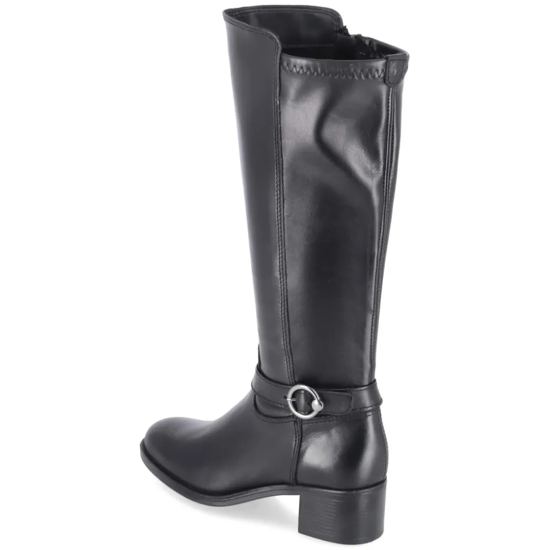 Der schwarze Stiefel von Tamaris vereint urbanen Chic mit funktionalen Details. Das Obermaterial aus Leder und Synthetik zeigt einen robusten Material-Mix, während der hintere Teil des Schafts aus stretchiger Synthetik angenehme Bewegungsfreiheit bietet. Ein zierender Knöchelriemen setzt einen dezenten Akzent, die runde Spitze und der 4,5 cm hohe Blockabsatz sorgen für zeitlosen Look und sicheren Stand. Die flexible, rutschfeste Laufsohle und das gepolsterte Fußbett erhöhen den Komfort im Alltag, die Decksohle aus Textil und Synthetik ergänzt das angenehme Tragegefühl. Mit Reißverschluss leicht anzuziehen, Schaftmaß ca. 33 cm x 34 cm (HxU). Fällt schmaler aus – eine Nummer größer bestellen. Modetipp: Besonders harmonisch zu Strickkleid und Oversize-Mantel oder als Kontrast zu lederähnlicher Leggings und klassischem Trenchcoat.