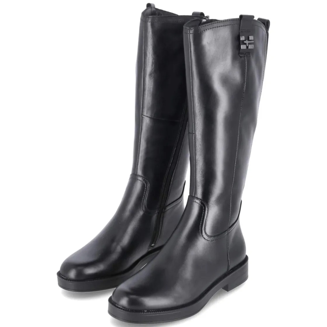 Zeitloses Design trifft auf Komfort: Der schwarze Tamaris Stiefel im Reitstiefellook überzeugt mit modernem Material-Mix aus Leder und Synthetik, runder Spitze und stabilem 3,5-cm-Blockabsatz. Das leichte Futter wärmt an kühlen Tagen, während die textile Decksohle und die flexible, rutschfeste Laufsohle für angenehm gedämpften Auftritt sorgen. Ein bequemer Reißverschlußeinstieg erleichtert das Anziehen, zwei Anziehlaschen und Elastikeinsätze am hinteren Schaft optimieren den Halt. Mit Schaftmaßen von ca. 36 x 36 cm und normaler Passform wird ein harmonisches Beinbild erreicht. Alltagstauglich, elegant und vielseitig kombinierbar – ein Favorit für viele Saisons. Modetipp: Zu schmalen Reitleggings, Oversize-Strick und Wollmantel stylen, dazu ein schlichter Ledergürtel für einen cleanen City-Look.