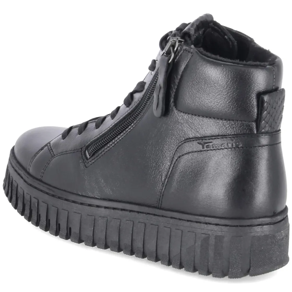 Sportliche Damen-Stiefelette von Tamaris in klassischem Schwarz, entworfen für erwachsene Trägerinnen, die Wert auf Komfort und Langlebigkeit legen. Das Obermaterial aus robustem Glattleder präsentiert sich als langlebiges Echtleder, das Form und Eleganz verbindet. Mit normal ausfallender Passform, runder Schuhspitze und einem gut gepolsterten Fußbett bietet das Modell entspannten Halt im Alltag. Textile Decksohle, gepolsterter Einstieg und ein verstärkter Fersenbereich erhöhen den Komfort, während das leichte Futter an kühlen Tagen angenehm wärmt. Der praktische Mix aus Schnürsenkeln und seitlichem Reißverschluss ermöglicht flexible Anpassung und schnelles An- und Ausziehen. Eine rutschfeste Laufsohle unterstützt sicheren Tritt auf urbanem Terrain. Modetipp: Ideal zu schmalen Denim-Silhouetten und grobem Strick, ebenso stimmig zu Midikleidern und Lederjacke für einen lässig-femininen City-Look.