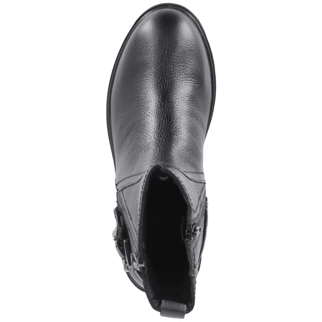 Zeitloses Design trifft auf Komfort: Die schwarzen Tamaris Damen‑Stiefeletten aus langlebigem Glattleder verbinden klare Linien mit subtilen Details. Der rund gearbeitete Leisten und der 3,5‑cm‑Blockabsatz sorgen für entspanntes Gehen im Alltag, während die flexible Profilsohle sicheren Halt gibt. Ein bequemer Reißverschlusseinstieg, unterstützt von Anziehlasche und kleinem Elastikeinsatz am Schaftrand, erleichtert das An- und Ausziehen. Innen verwöhnt eine weiche Textil‑Decksohle zusammen mit der besten Memory‑Foam‑Fußbettung, die sich dem Fuß anpasst. Der Schaft misst etwa 15 cm in der Höhe bei ca. 22 cm Umfang. Zierriemen mit Schnalle im Fersenbereich und ein außen platzierter Zierreißverschluss setzen dezente Akzente. Das Modell fällt normal aus und bietet vielfältige Kombinationsmöglichkeiten von Business bis Casual. Modetipp: Zu Cropped‑Denim und Wollmantel wirkt der Blockabsatz besonders modern, mit Midirock entsteht ein harmonischer Kontrast.