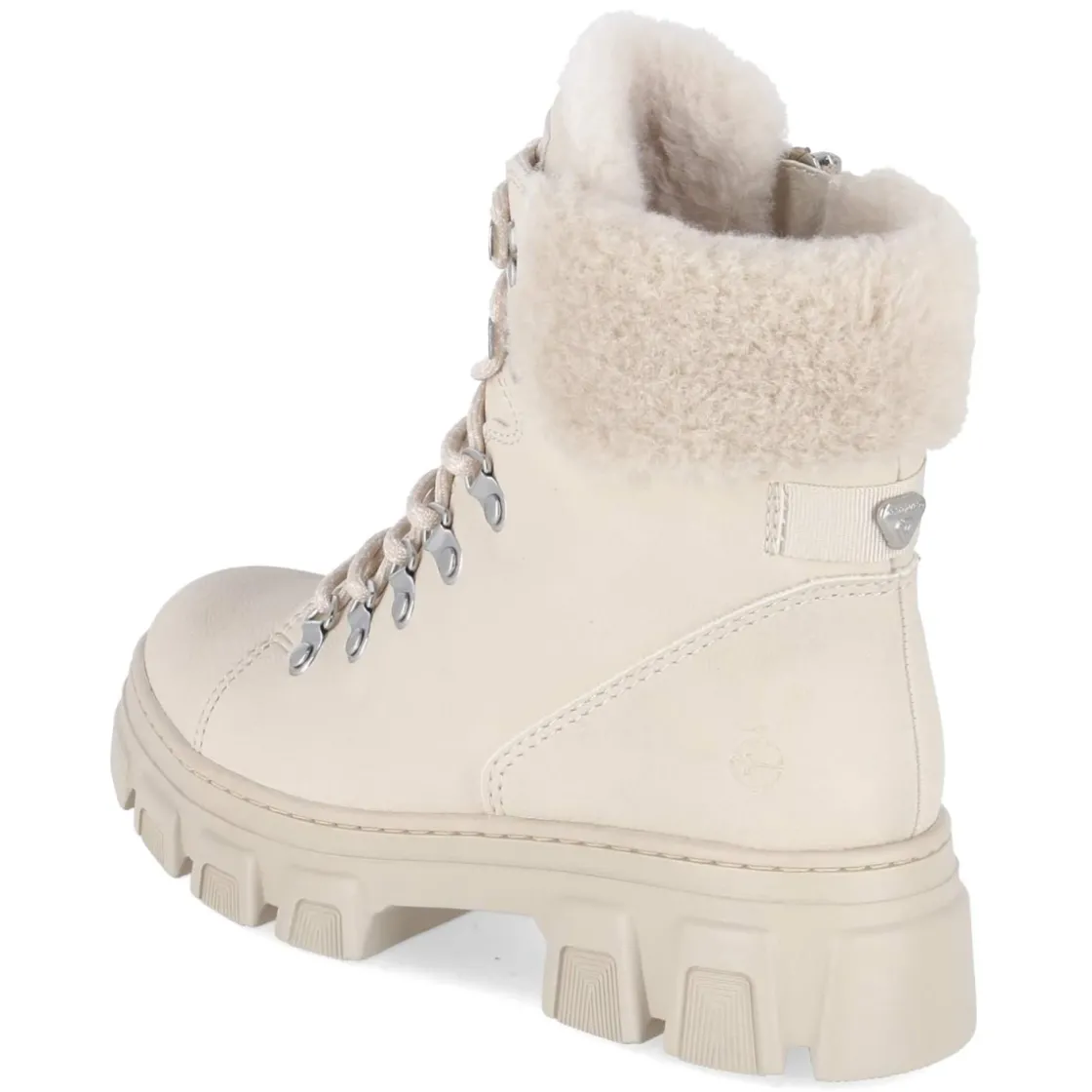 Die Winterboots von Tamaris verbinden funktionale Wärme mit einem modernen Look. Der Mix aus Textil und Synthetik hält dank wasserabweisender Ausrüstung trocken, das Warmfutter und die Thermo-Innensohle speichern zuverlässig Wärme an frostigen Tagen. Ein weicher Einstieg mit Kunstfellkrempe, gepolstertes Fußbett und die verstärkte Ferse sorgen für Komfort und Halt, während der 5 cm hohe Blockabsatz stabil auftritt. Die runde Spitze bietet Zehenfreiheit, die starke, rutschfeste Profilsohle greift sicher auf glatten Wegen. Praktisch: Schnürung für individuellen Sitz, kombiniert mit Reißverschluss und zusätzlichem Zipper für schnelles An- und Ausziehen. Das beigefarbene Design lässt sich vielseitig kombinieren und fällt normal aus. Hergestellt aus veganen Materialien. Modetipp: Ton-in-Ton mit Wollmantel in Creme und Strickkleid stylen, dazu ein grob gestrickter Schal.