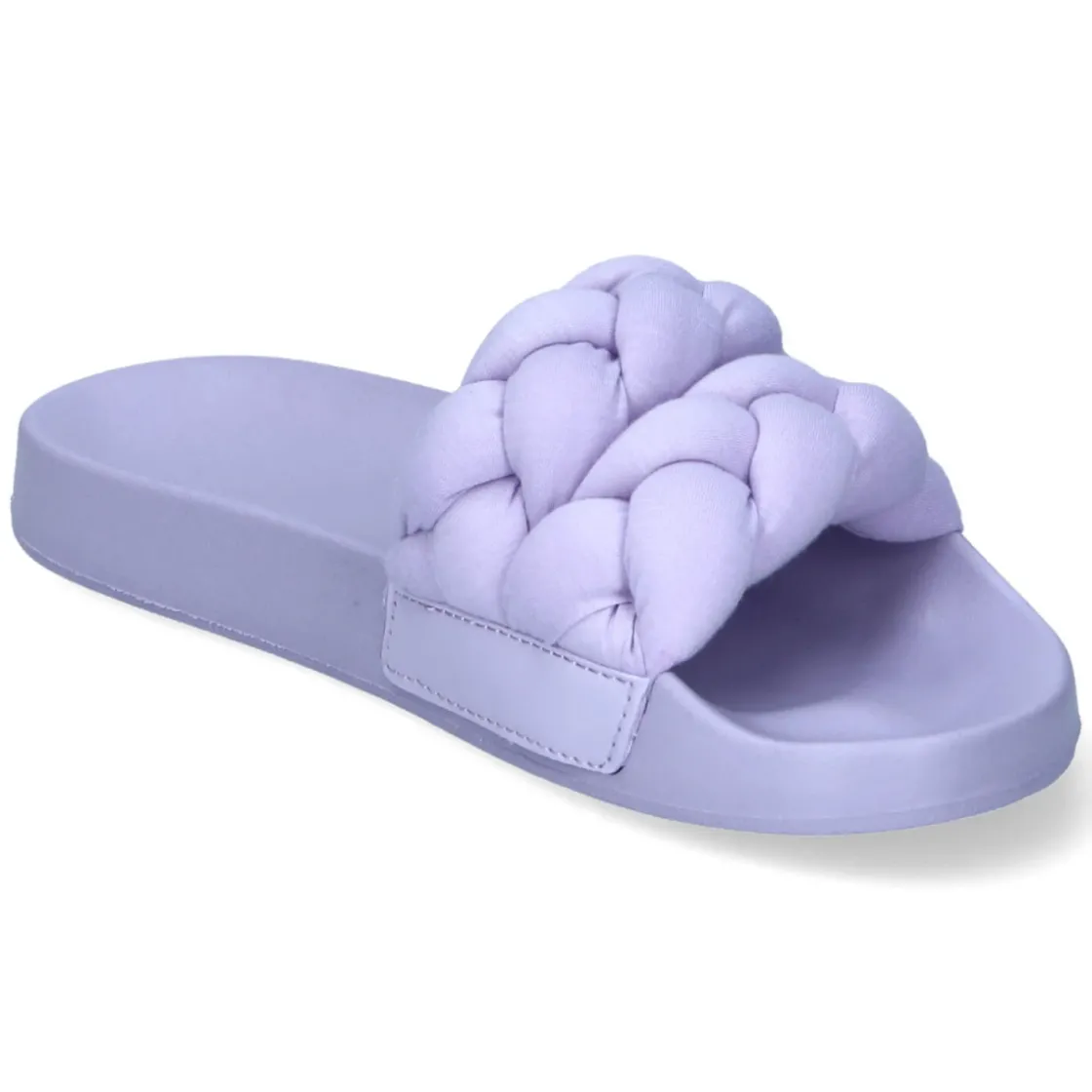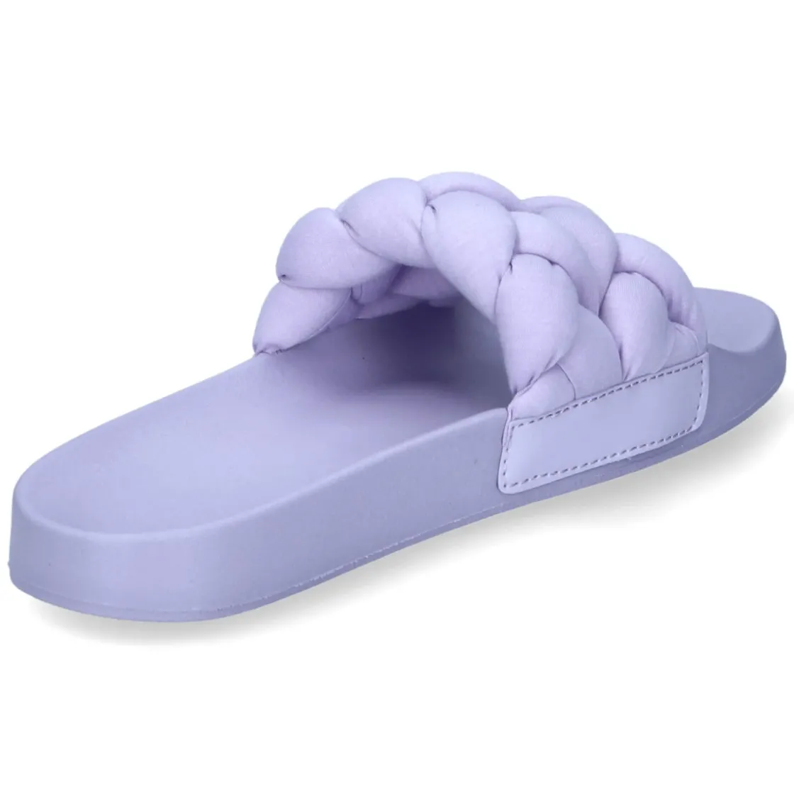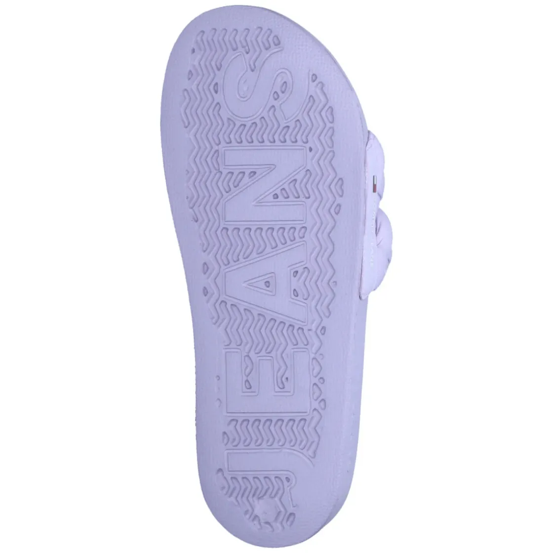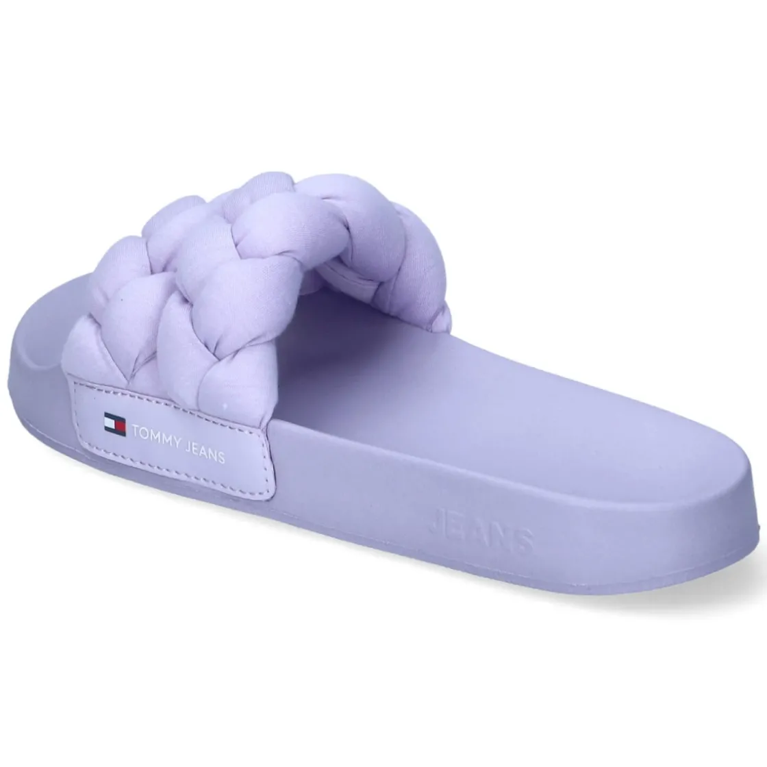 Die Pantoletten von Tommy Jeans setzen auf eine lässig-moderne Optik in kräftigem Lila und kombinieren luftig gewebtes Textil mit zwei dekorativ geflochtenen Riemen. Die offene Schuhspitze und der Verzicht auf einen Verschluss unterstreichen den unkomplizierten Charakter, während dezente Markendetails für eine hochwertige Note sorgen. Ein leicht gepolstertes, vorgeformtes Fußbett mit synthetischer Decksohle bietet angenehme Dämpfung und unterstützt entspanntes Gehen im Alltag. Die flexible Laufsohle mit leichtem Profil gibt rutschhemmenden Halt auf verschiedenem Untergrund. Der Schnitt fällt normal aus und eignet sich für Erwachsene, die einen sportlich-inspirierten Sommerlook schätzen. Modetipp: Für einen harmonischen Ton-in-Ton-Auftritt Lila mit Creme oder Grau kombinieren und dazu weite Denim-Shorts oder eine fließende Leinenhose tragen.