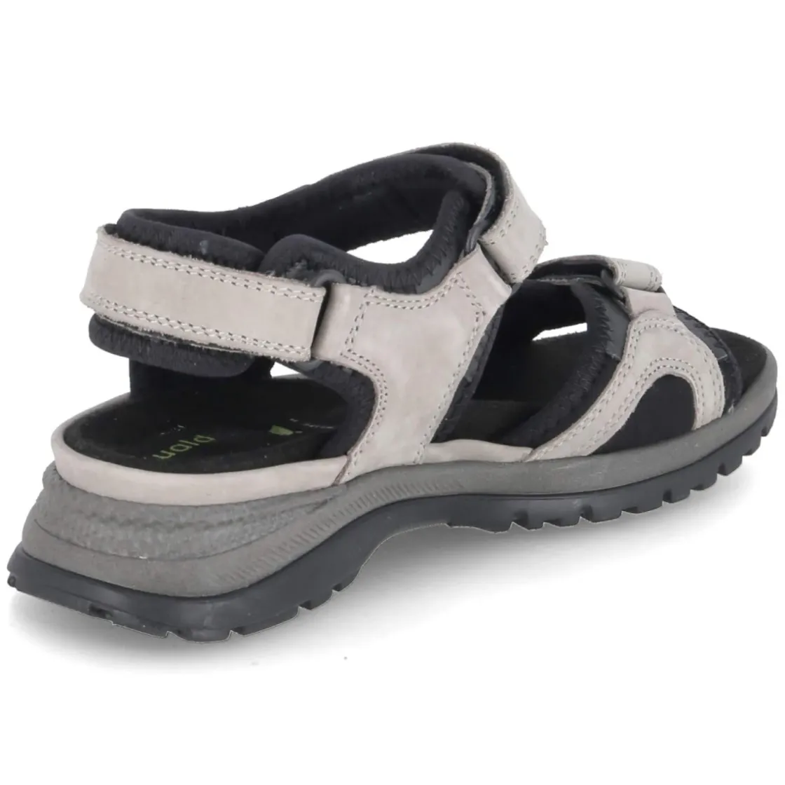 Die Sandalen H-SORA von Waldläufer verbinden sommerliche Leichtigkeit mit verlässlichem Komfort. Das graue Obermaterial aus hochwertigem Rauleder zeigt sich langlebig und anschmiegsam, während die offene Schuhspitze für angenehme Luftzirkulation sorgt. Drei praktische Klettverschlüsse erlauben passgenaue Justierung, der seitliche Steg stabilisiert unauffällig. Ein komfortables Wechselfußbett schafft wohltuende Dämpfung und lässt sich bei Bedarf durch eigene Einlagen ersetzen; die textile Decksohle und das leichte Futter steigern den Tragekomfort zusätzlich. Die flexible, rutschhemmende Profillaufsohle bietet soliden Grip auf verschiedensten Untergründen und unterstreicht den alltagstauglichen Charakter. Dezente Ziernähte geben dem Modell eine moderne, ruhige Note. Der Schnitt fällt normal aus. Modetipp: Ton in Ton mit grauer Leinenhose und weißem Hemd wirkt der Look edel, ein Akzentgürtel in Silber komplettiert das Outfit.