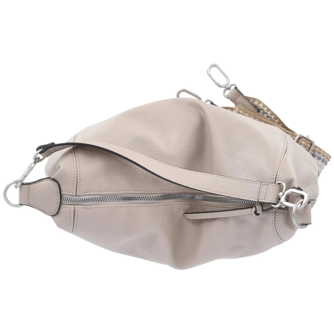 Die Hobo Bag in Beige kombiniert lässige Form mit durchdachter Funktionalität. Mit ca. 32 x 35 x 11 cm und rund 10 Litern Volumen bietet sie ausreichend Platz für den Alltag, während das Reißverschluss-Hauptfach mit innenliegendem Steckfach und Reißverschlussfach Ordnung schafft. Ein verstärkter Boden sorgt für Standfestigkeit, das Frontlogo setzt einen dezenten Akzent. Der verstellbare, abnehmbare Schulterriemen (ca. 145 cm) ermöglicht komfortables Crossbody-Tragen, der kurze Gurt (ca. 30 cm) ist ideal für die Hand oder die Schulter. Als Modell für Damen entworfen, überzeugt sie durch ihre weiche, charakteristische Hobo-Silhouette. Modetipp: Zur Ton-in-Ton-Kombination mit beigen Wide-Leg-Hosen und einem cremefarbenen Stricktop stylen; goldene Creolen und Loafer runden den eleganten, entspannten Look ab.