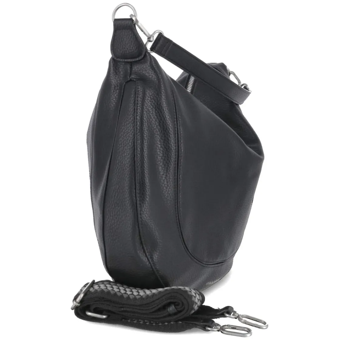 Diese Hobo Bag in elegantem Schwarz verbindet eine sanft geschwungene Form mit praktischer Funktion. Mit ca. 32 x 35 x 11 cm und etwa 10 Litern Volumen bietet sie großzügigen Stauraum, während der verstärkte Boden für verlässliche Standfestigkeit sorgt. Ein Reißverschluss-Hauptfach schützt den Inhalt, innen strukturieren ein Steckfach und ein zusätzliches Reißverschlussfach wichtige Essentials. Der ca. 145 cm lange, verstellbare und abnehmbare Schulterriemen ermöglicht lässiges Crossbody-Tragen, der kurze Gurt mit ca. 30 cm Länge bietet eine elegante Option nah an der Schulter. Die schwarze Farbe lässt sich mühelos in Business- wie Freizeit-Looks integrieren und verleiht jedem Outfit eine moderne Ruhe. Modetipp: Zur Betonung der lässigen Hobo-Silhouette mit einem Oversize-Blazer, gerader Denim und Loafern kombinieren; für den Abend ergänzt ein Slipdress mit feinem Strick und zarten Creolen die minimalistische Ästhetik.