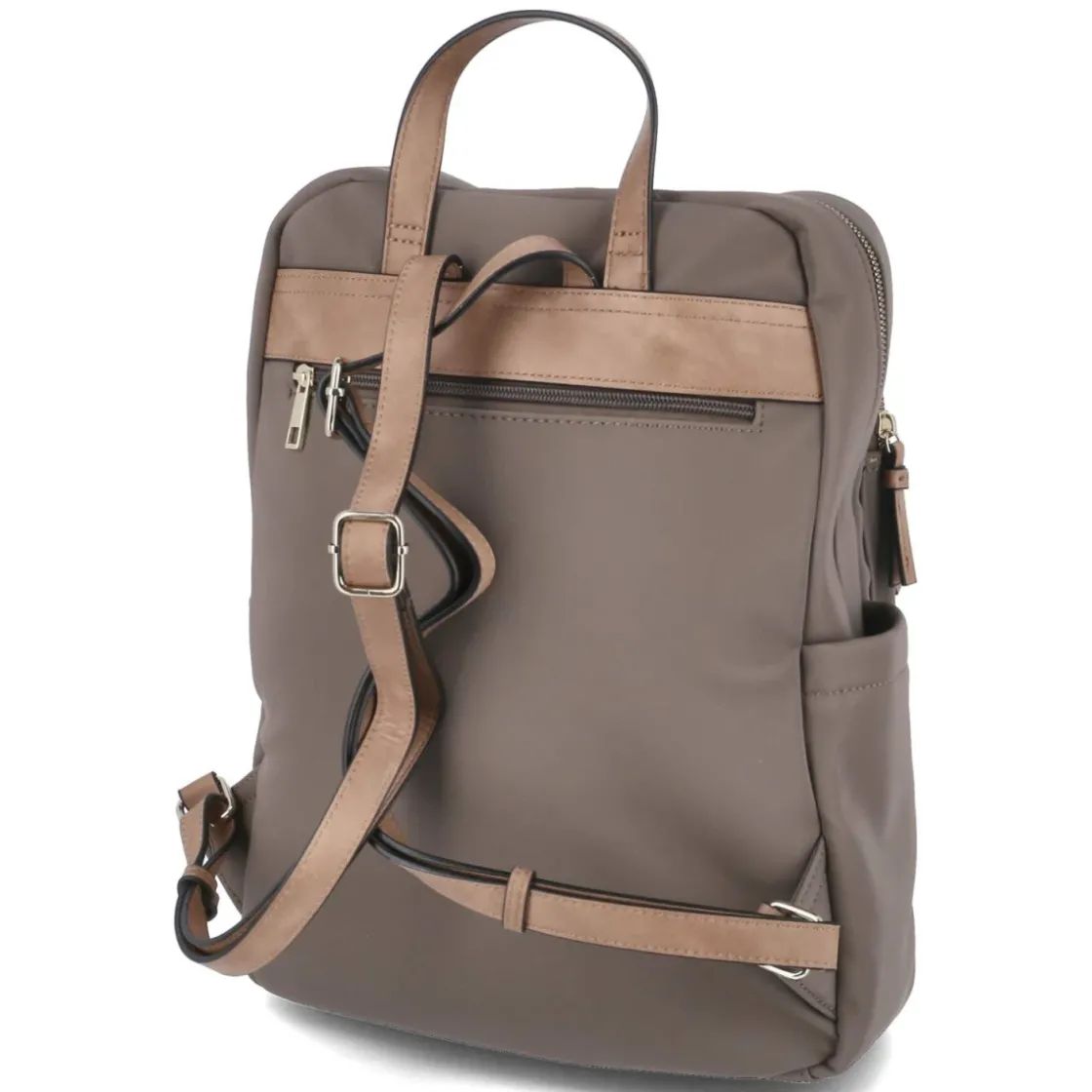Zeitloses Design trifft auf clevere Funktion: Dieser Damentrucksack in elegantem Taupe begleitet stilvoll durch Büro, Uni und Freizeit. Goldfarbene Metallelemente setzen dezente Akzente, während das robuste Finish und der verstärkte Boden Formstabilität verleihen. Das Reißverschlusshauptfach schützt den Inhalt, innen sorgen ein gepolstertes Fach in Laptopgröße und ein zusätzliches Reißverschlussfach für geordnete Essentials. Zwei Fronttaschen halten Kleinigkeiten schnell griffbereit, das Rückenfach bietet Extra-Sicherheit. Mit ca. 37 x 28 x 13 cm und rund 7 Litern Volumen bleibt die Silhouette kompakt, die verstellbaren Tragegurte (bis ca. 90 cm) und der Henkel ermöglichen flexible Trageoptionen. Modetipp: Ton-in-Ton mit beigen, sandfarbenen oder cremeweißen Looks kombinieren und mit zartem Goldschmuck die Hardware elegant aufnehmen.
