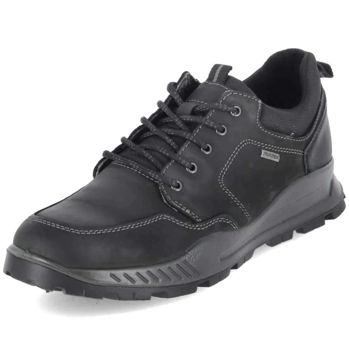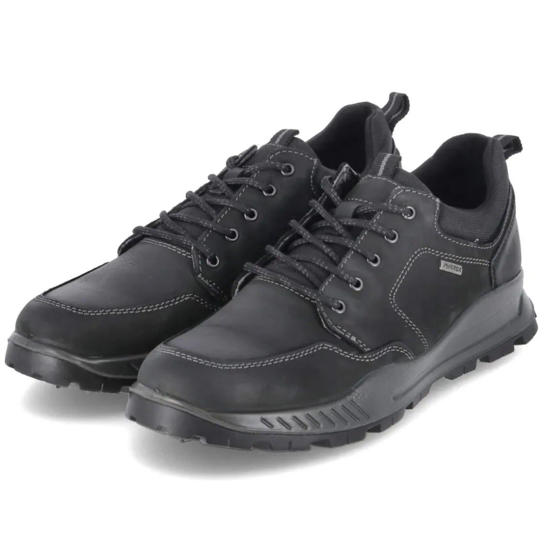 Der Beliano Halbschuh für Herren verbindet klassische Linien mit moderner Funktion. Das schwarze Obermaterial aus Leder und Textil arbeitet mit IMACTEX zusammen und bildet ein wasserfestes, zugleich angenehm flexibles Schutzschild gegen Nässe. Weiße Nähte setzen dezente Akzente, die runde Spitze offeriert entspannten Platz. Innen sorgt eine hautfreundliche Lederdecksohle für ein ausgeglichenes Fußklima; das Wechselfußbett lässt sich bei Bedarf gegen eigene Einlagen tauschen. Eine rutschfeste Profilsohle und der gepolsterte Einstieg steigern Komfort und Halt, zwei Anziehlaschen erleichtern das Hineinschlüpfen. Durch den Schnürverschluss sitzt der Schuh sicher und fällt in der Größe normal aus. Dank der guten Kombinationsmöglichkeiten funktioniert das Modell vom Büro bis zum Wochenende. Modetipp: mit grauer Chino, feinem Strickpullover und passendem Ledergürtel gelingt ein smarter, urbaner Auftritt.