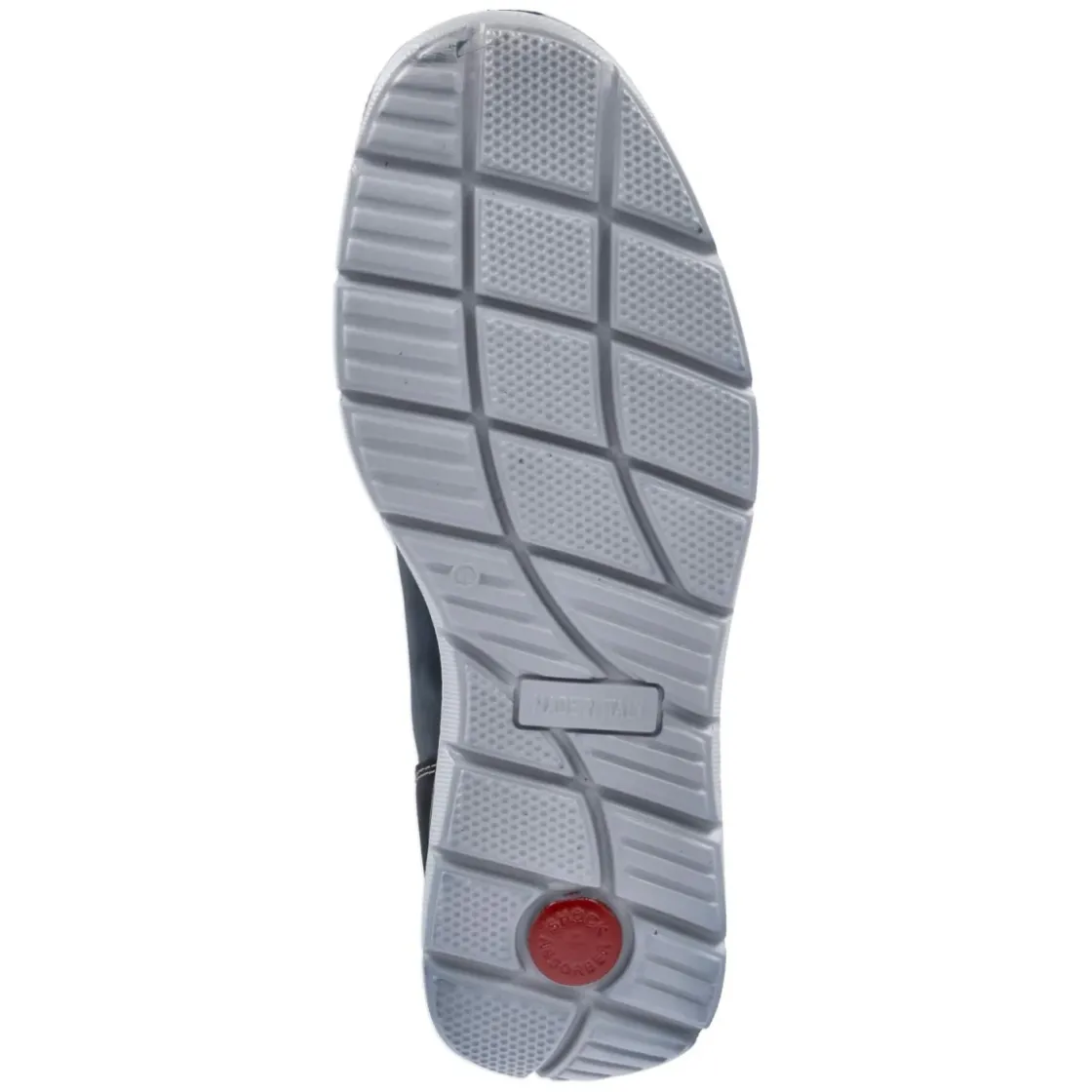 Der Low Sneaker von Beliano in sattem Dunkelblau verbindet sportliche Optik mit funktionalen Details. Das Obermaterial aus Leder und Textil sorgt für einen robusten Material-Mix, während die runde Schuhspitze und der leicht gepolsterte Einstieg ein angenehmes Tragegefühl bieten. Praktisch ist die Kombination aus Schnürsenkeln und zusätzlichem Reißverschluss, die das An- und Ausziehen erleichtert. Die hautfreundliche Lederdecksohle und das gepolsterte Wechselfußbett mit Lederbezug schaffen Komfort auf langen Wegen. Verstärkte Zehen- und Fersenbereiche erhöhen die Stabilität, die flexible, rutschhemmende Laufsohle mit Shockabsorber in der Ferse federt Schritte zuverlässig ab. Der Schnitt fällt normal aus und richtet sich an erwachsene Herren, die Wert auf Komfort legen. Modetipp: Mit Chinos in Graunuancen und einem leichten Strickpullover entsteht ein smarter Casual-Look, der die dunkle Blau-Nuance elegant aufgreift.