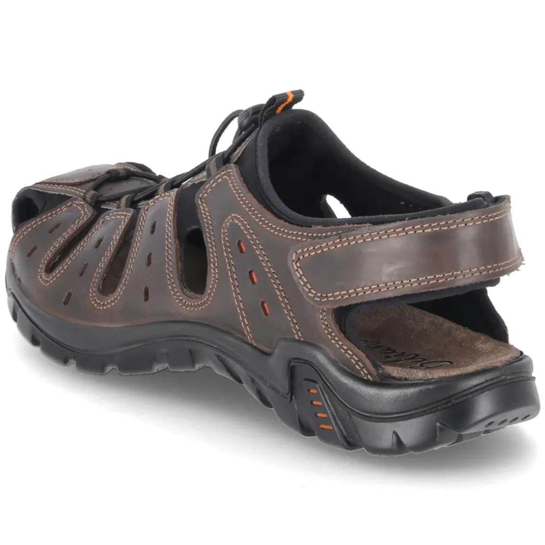 Die Herren-Sandalen von Beliano in Braun vereinen Schutz und Komfort: Der geschlossene Zehenbereich mit runder Spitze bewahrt vor Stößen, während das Obermaterial aus Leder und Synthetik einen robusten Material-Mix bietet. Klettverschluss und Klettriemen im Fersenbereich ermöglichen schnelles Anpassen, unterstützt von einer bequemen Elastikschnürung mit Elastikband und Schnellverschluss. Ein neoprenähnliches Futter schmiegt sich angenehm an, die lederne Decksohle und das gepolsterte Fußbett sorgen für langanhaltenden Tragekomfort. Die flexible Profilsohle gibt Halt auf verschiedenem Untergrund, dekorative Ziernähte setzen subtile Akzente. Größenhinweis: fällt normal aus. Ein funktionaler Begleiter für Alltag, Reise und Wochenend-Ausflüge mit sportiver Note. Modetipp: Zu Chinos in Sandtönen und einem luftigen Leinenhemd kombinieren, dazu ein geflochtener Ledergürtel – so entsteht ein lässig-urbaner Sommerlook.