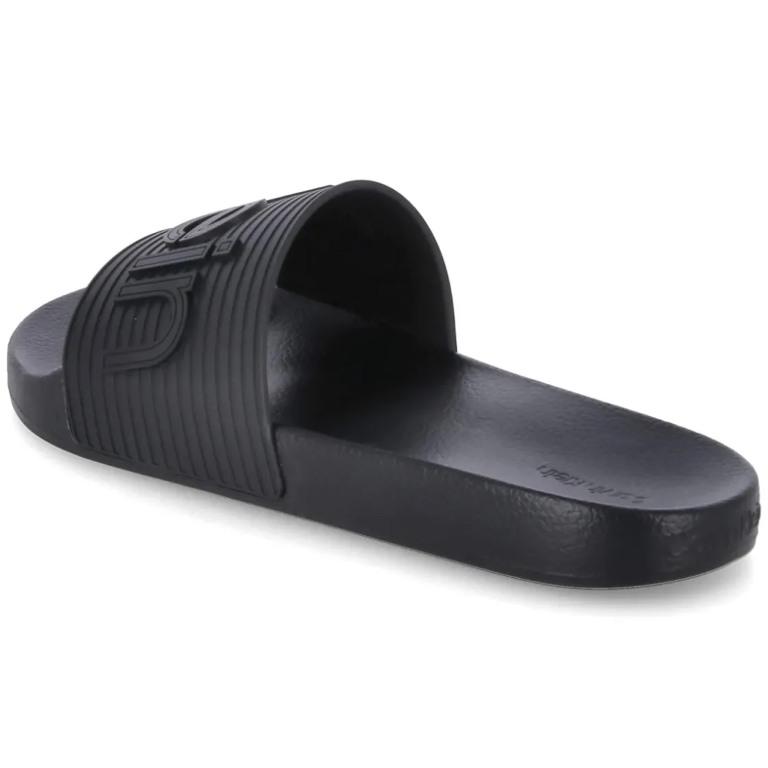 Der Calvin Klein POOL SLIDE für Herren verbindet minimalistischen Stil mit funktionalem Komfort. Das schwarze Design wird durch gestreifte Riemen mit markantem Schriftzug akzentuiert und fügt sich mühelos in sommerliche und sportive Outfits ein. Pflegeleichte Synthetik, wasserabweisende Eigenschaften und die offene Schuhspitze machen den Slide zum unkomplizierten Begleiter am Pool, Strand oder in der City. Die weiche Decksohle und das vorgeformte Fußbett unterstützen angenehmen Halt, während die flexible Laufsohle bei jedem Schritt Bewegungsfreiheit bietet. Als Schlupfschuh mit größengetreuer Passform überzeugt das Modell durch einfache Handhabung und vielseitige Kombinationsmöglichkeiten. Modetipp: Zu schwarzen Swimshorts und einem weißen Oversize-T-Shirt getragen entsteht ein cleaner Look; mit leichter Leinenhose und Sonnenbrille wirkt das Outfit urban und zeitlos.
