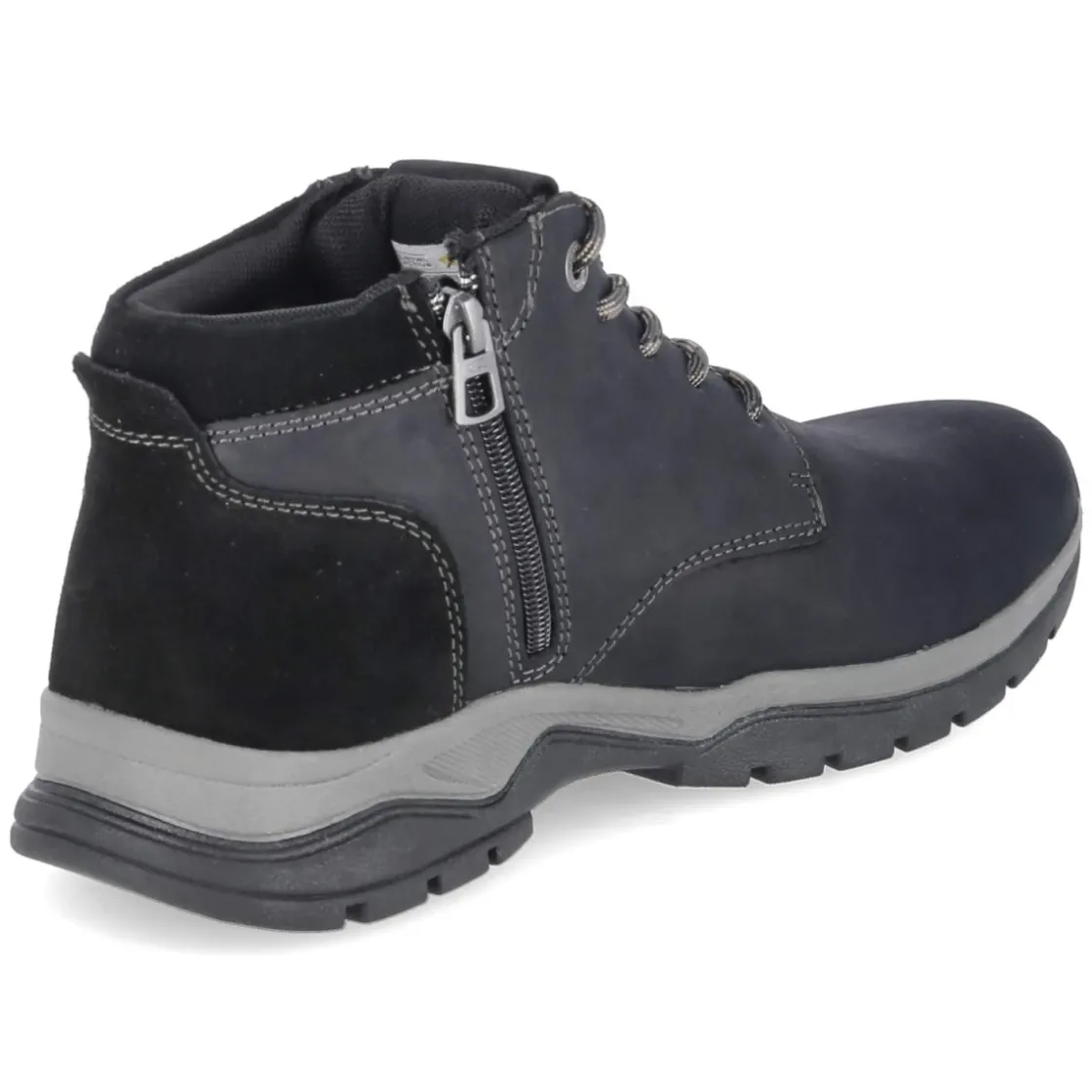 Der Herren-Boot von Camel Active aus schwarzem Rauleder vereint Robustheit und Komfort. Das langlebige Echtleder legt sich weich um den Fuß, die runde Spitze bietet Bewegungsfreiheit, während gepolsterter Einstieg und verstärkte Ferse angenehme Stabilität bringen. Schnürsenkel sorgen für individuellen Halt, der seitliche Reißverschluss für schnelles An- und Ausziehen. Eine synthetische Decksohle und das herausnehmbare Wechselfußbett bieten pflegeleichte Hygiene und die Option eigener Einlagen. Die flexible, griffig profilierte Laufsohle greift zuverlässig auf Stadtpflaster wie auf Landwegen. In der gewohnten Größe bestellt, sitzt der Boot regulär und trägt sich mühelos durch lange Tage. Der vielseitige Look in Schwarz lässt sich ebenso smart wie lässig kombinieren und passt zu unterschiedlichsten Anlässen. Modetipp: Besonders harmonisch zu Straight-Jeans in Dunkelblau, grober Strick und gewachster Fieldjacket; für den Büro-Casual-Look mit Wollchino und Overshirt.