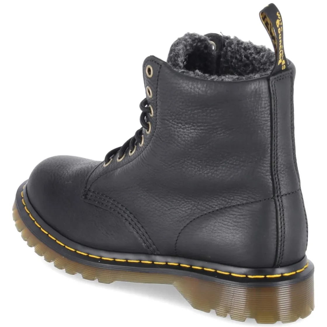 Markante Präsenz und bewährte Qualität: Die schwarzen Dr. Martens Schnürboots vereinen ein klassisches Design mit robustem Charakter. Glattes, langlebiges Echtleder formt die ikonische Silhouette mit runder Spitze, während die rutschhemmende Laufsohle sicheren Tritt auf Asphalt und nassem Pflaster unterstützt. Der Blockabsatz mit 3,5 cm bietet Stabilität und eine dezente Erhöhung, die Textildecksohle ergänzt den Komfort im Alltag. Der schmale Schnitt unterstreicht die klare Linienführung; das Modell fällt insgesamt schmaler aus. Die Schnürung ermöglicht eine präzise Anpassung und sorgt für festen Halt. Modetipp: Besonders stimmig zu aufgekrempelten Chinos, feinem Strick und einem strukturierten Wollmantel, um den kontrastierenden Mix aus Roughness und Eleganz zu betonen.