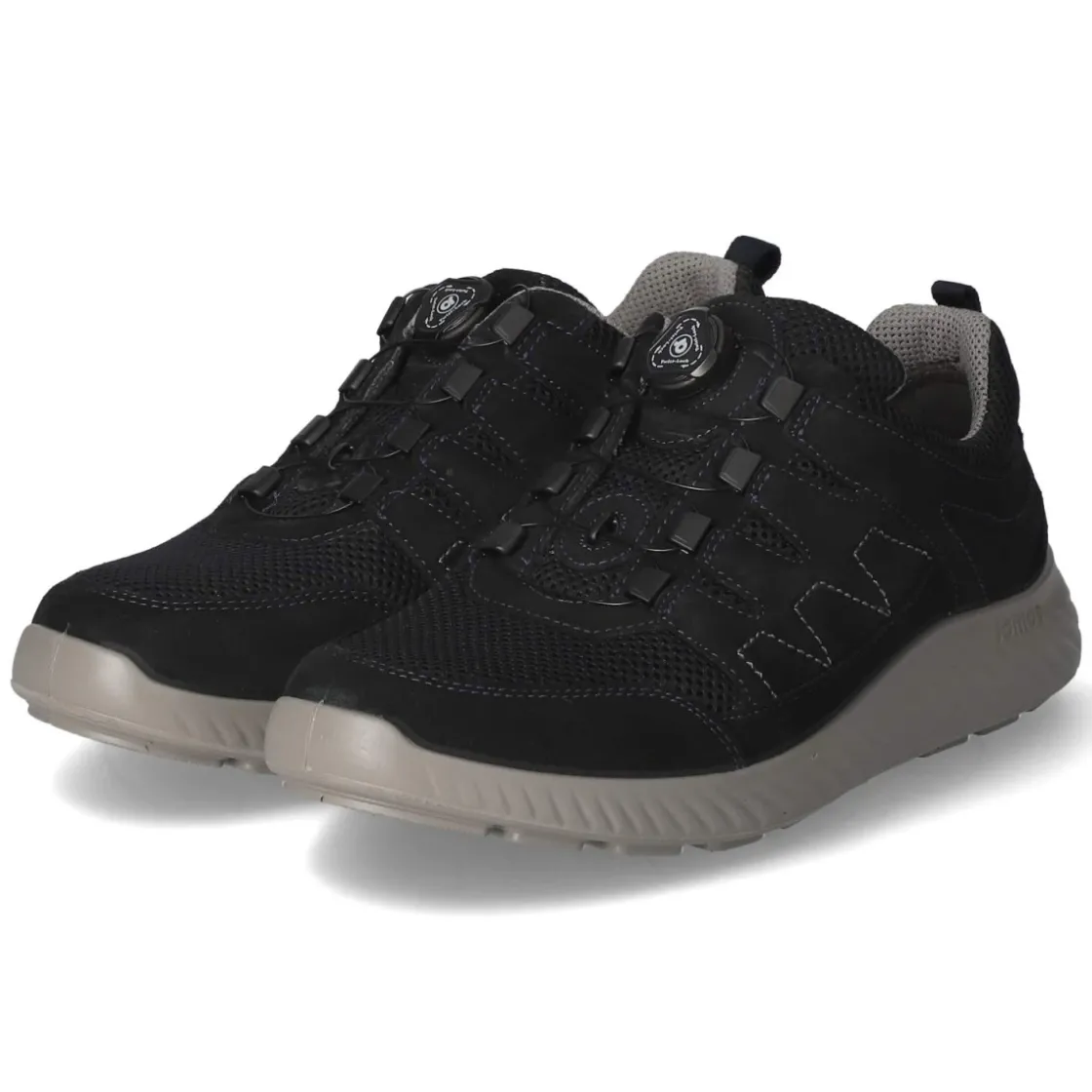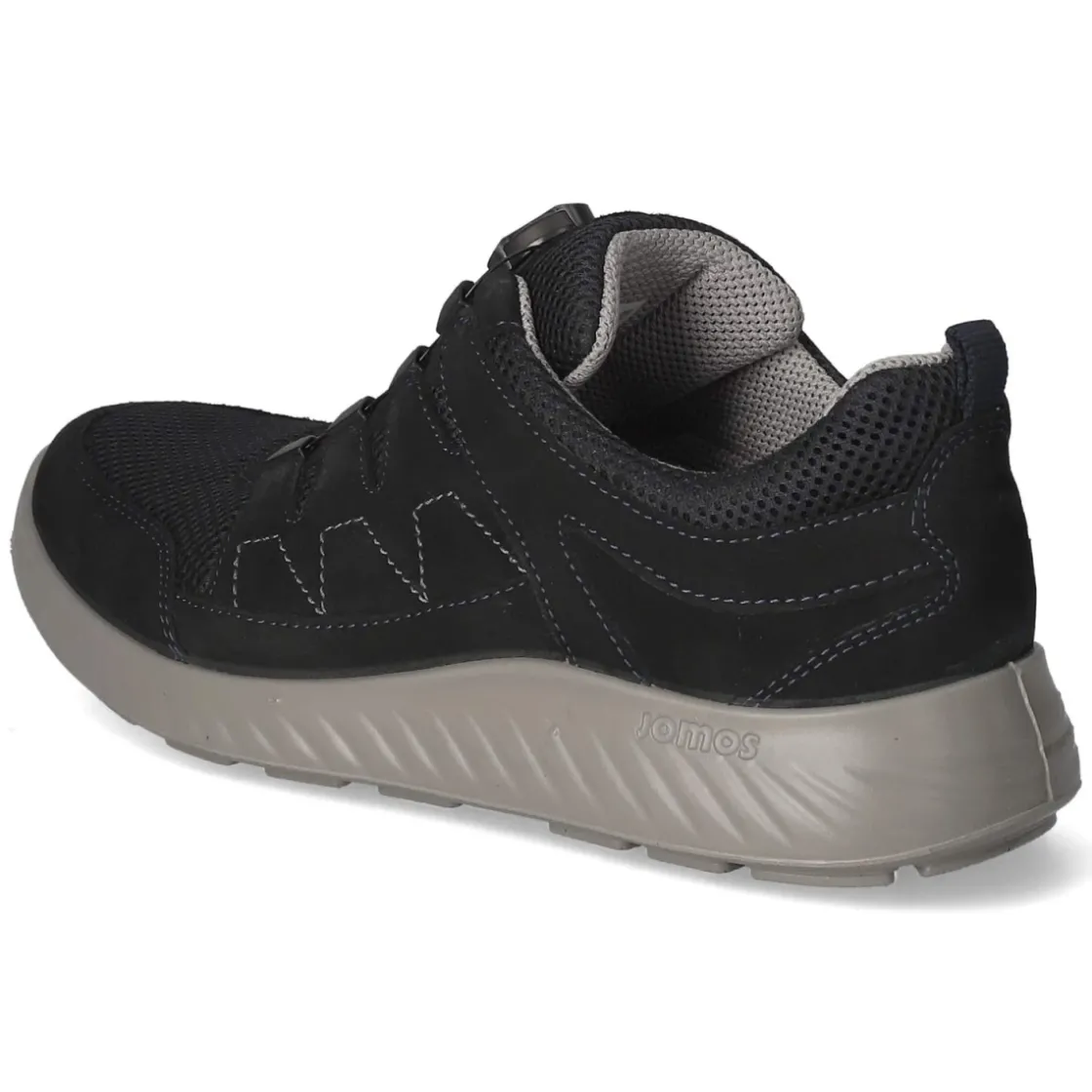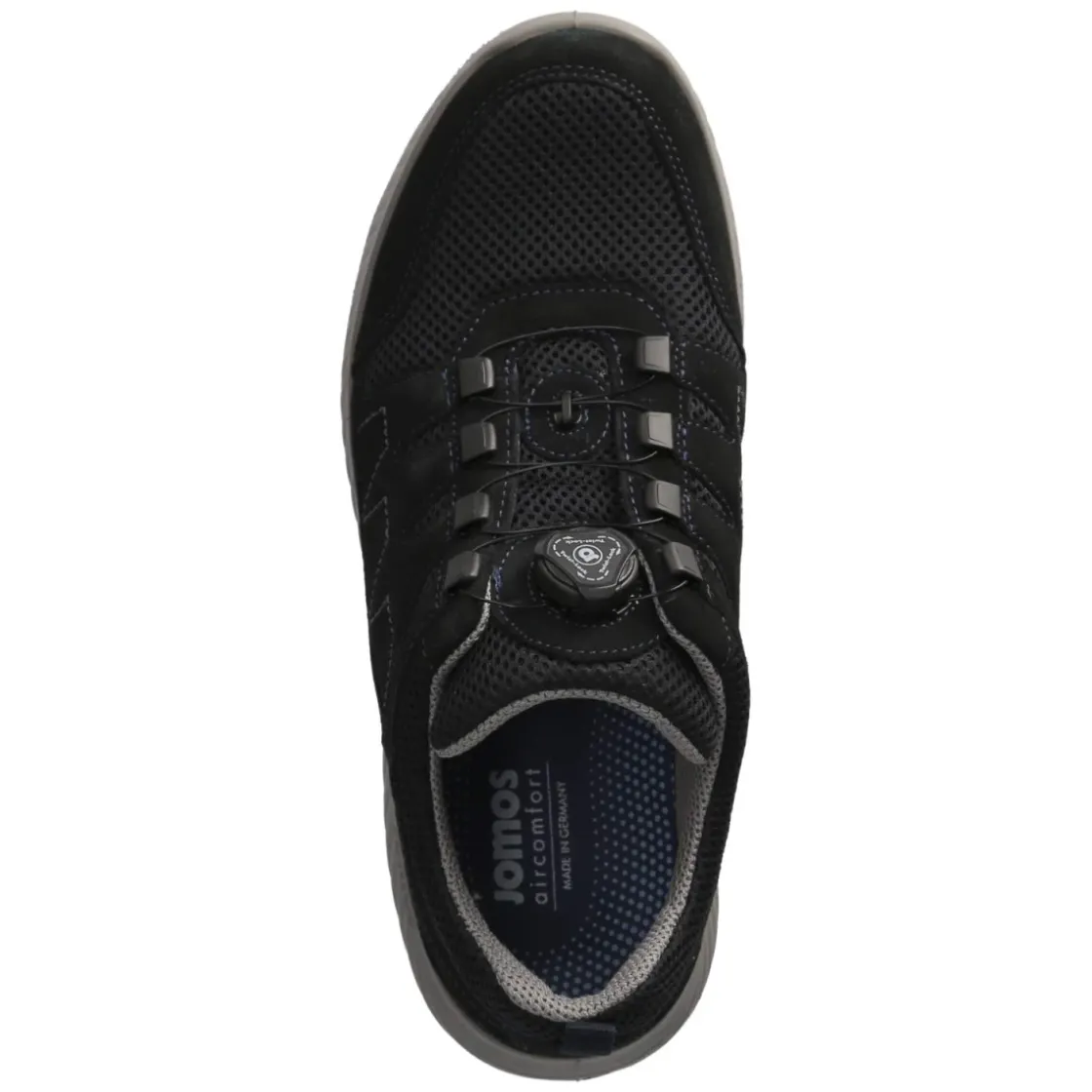 Dieser Herren-Schnürschuh von Jomos in klassischem Blau überzeugt mit einem luftigen Material-Mix aus Leder und Textil, der angenehm leicht am Fuß liegt. Die runde Spitze und der verstärkte Zehen- und Fersenbereich sorgen für ein stimmiges, sportlich-urbanes Erscheinungsbild und zusätzliche Stabilität. Für Komfort stehen der gepolsterte Einstieg, die gepolsterte Wechseldecksohle und die textile Decksohle, während der flexible Schnellverschluss das An- und Ausziehen spürbar vereinfacht. Die flexible, leicht rutschhemmende Laufsohle gibt verlässlichen Halt im Alltag, das geringere Gewicht erhöht die Alltagstauglichkeit. Mit Anziehlasche und Ziernähten setzt das Modell dezente Akzente. Die Passform fällt normal aus, das Wechselfußbett lässt sich bei Bedarf austauschen. Modetipp: Zu einer schmal geschnittenen Chino und einem Feinstrick-Polo entsteht ein cleaner Casual-Look.