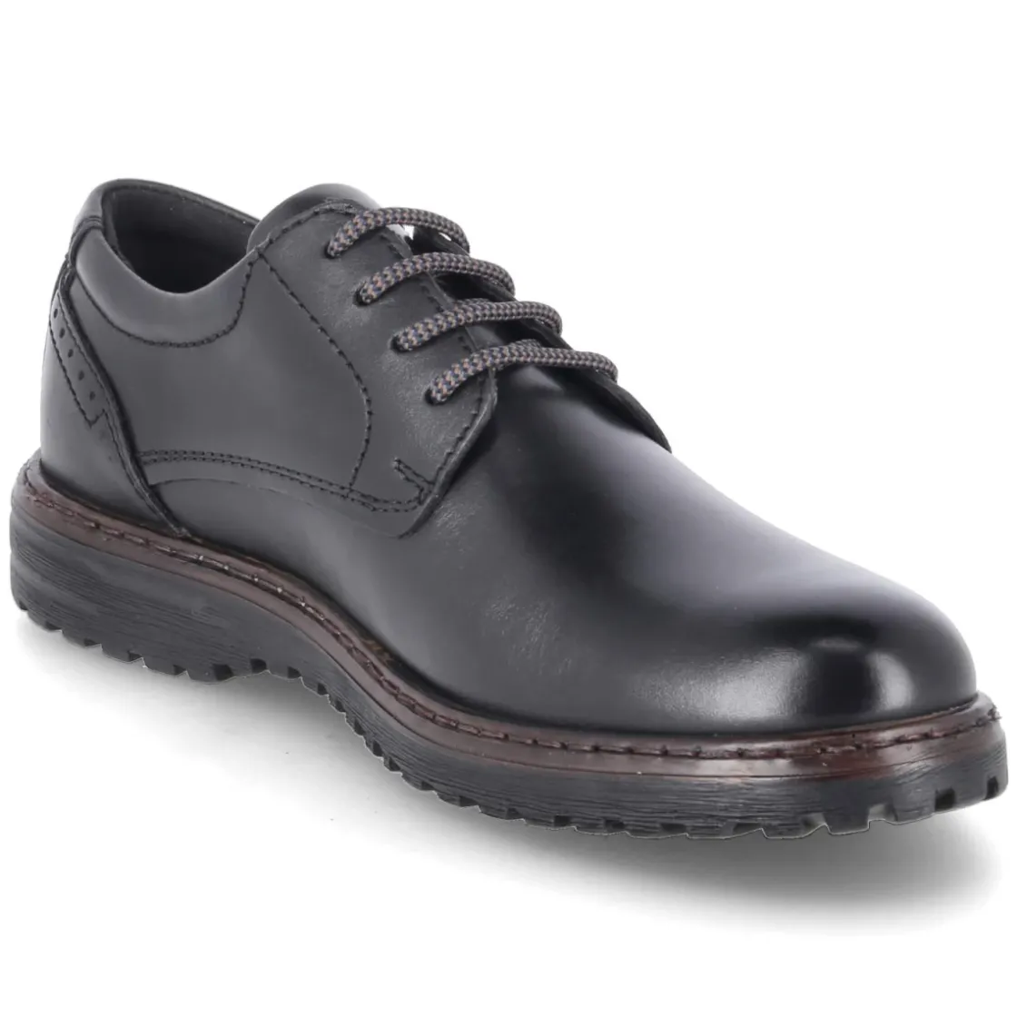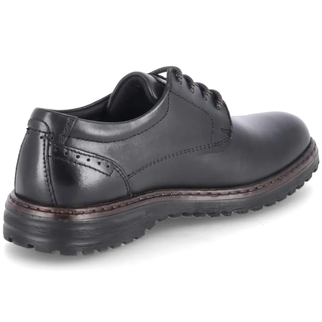 Der Halbschuh ERROLL 50 von Josef Seibel verbindet klassisches Design mit funktionalen Details für den Alltag. Glattes schwarzes Leder, runde Kappe und ein sicherer Schnürverschluss sorgen für einen zeitlosen Look, der im Büro ebenso überzeugt wie in der Freizeit. Das Modell ist wasserfest und zugleich atmungsaktiv; die Lederdecksohle unterstützt ein ausgeglichenes Fußklima. Das komfortable Wechselfußbett erhöht die Dämpfung und kann bei Bedarf ersetzt werden. Ein verstärkter Fersenbereich mit dezentem Lochmuster stabilisiert die Passform, während die flexible, rutschfeste Laufsohle zuverlässigen Halt bietet. Der Schnitt fällt normal aus und eignet sich für erwachsene Herren, die Wert auf Komfort und Stil legen. Modetipp: Besonders stimmig wirkt der Schuh zu dunklen Chinos, weißem Oxford-Hemd und leichtem Wollblazer.