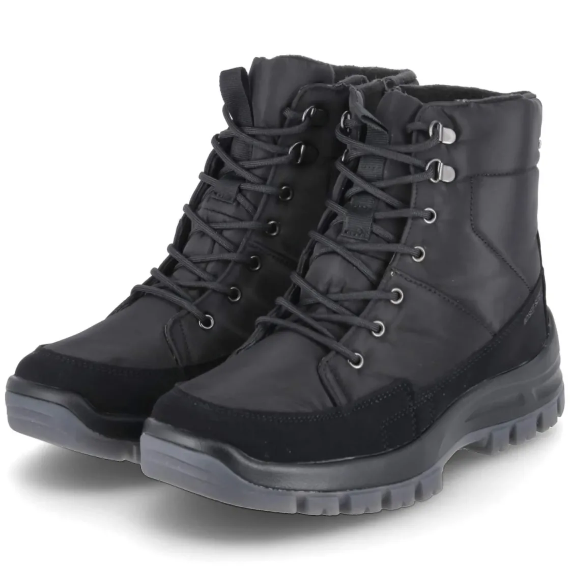 Der Snowboot ALASKA 50 von Josef Seibel vereint zuverlässigen Wetterschutz mit hohem Tragekomfort. Das robuste textile Obermaterial ist wasserfest verarbeitet und zusätzlich wasserabweisend, während die atmungsaktive Konstruktion ein angenehmes Fußklima bewahrt. Warmes Teddyfutter umschließt den Fuß bis über den Knöchel und sorgt an kalten Tagen für wohlige Wärme. Die rutschhemmende Profilsohle bietet sicheren Halt auf glatten Wegen, der verstärkte Fußrahmen erhöht Stabilität und Schutz. Praktisch im Alltag: die Kombination aus Schnürsenkeln und zusätzlichem Reißverschluss für schnellen Einstieg. Die runde Schuhspitze und die normale Passform unterstützen natürliches Abrollen; das Wechselfußbett erlaubt individuelle Einlagen. Modetipp: In Kombination mit dunklen Cargohosen, Wollsocken und einer technischen Parka-Jacke entsteht ein funktionaler Winter-Look in cleanem Schwarz.