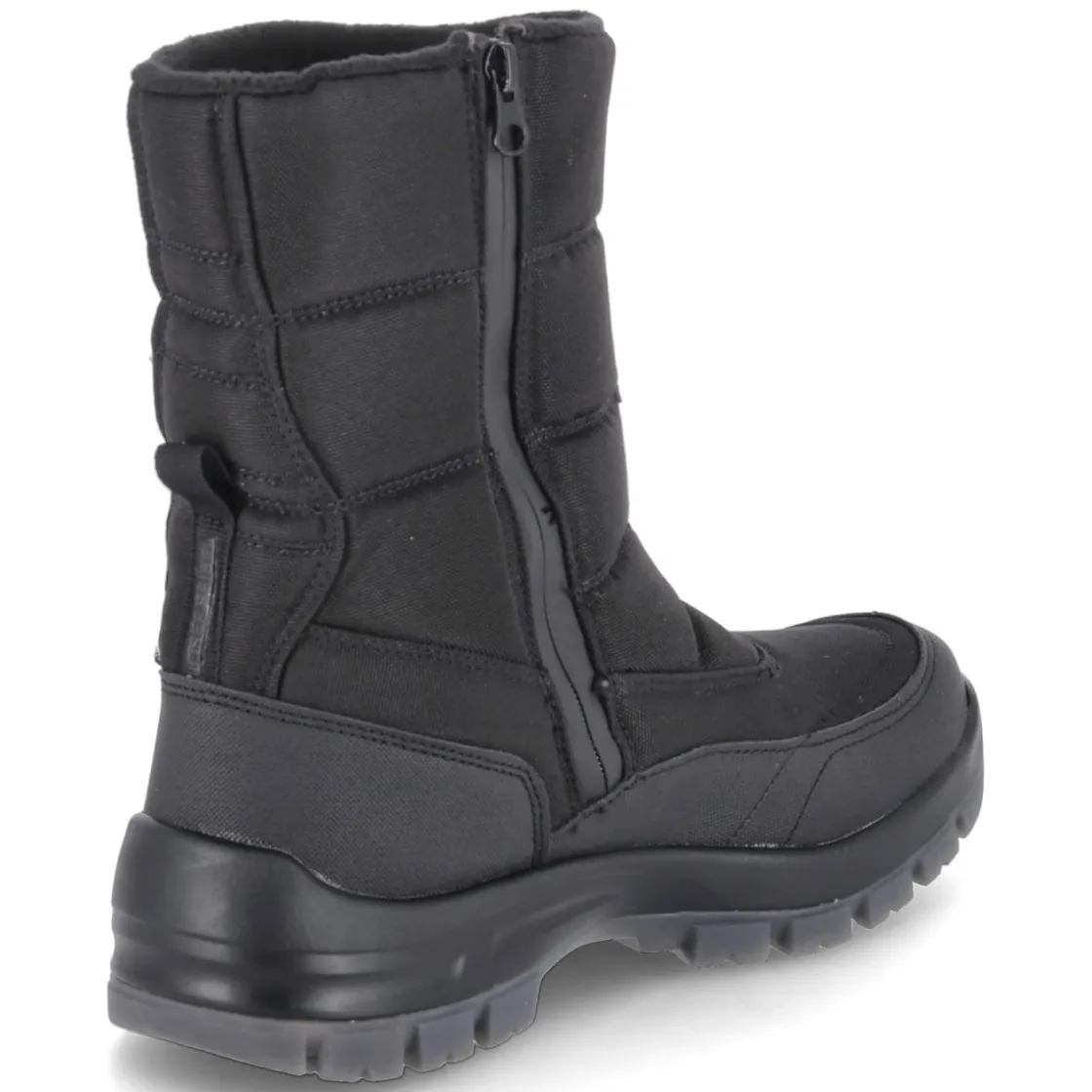 Der Snowboot ALASKA 53 von Josef Seibel bringt verlässliche Wärme und Schutz in Schwarz in winterliche Tage. Ein robustes Textil-Obermaterial mit verstärktem Fußrahmen trifft auf wasserfeste, atmungsaktive Eigenschaften, sodass Nässe draußen bleibt und innen ein angenehm trockenes Klima herrscht. Das kuschelige Teddyfutter und die textile Decksohle umschließen den Fuß weich, während die rutschhemmende Profilsohle auf glatten Wegen Sicherheit vermittelt. Durch den bequemen Reißverschlußeinstieg gelingt das Anziehen mühelos; die runde Schuhspitze und der normale Schnitt bieten entspannten Platz. Der Schaft misst etwa 22 Zentimeter in der Höhe und 32 Zentimeter im Umfang, was Halt und Beweglichkeit ausbalanciert. Das wechselbare Fußbett erlaubt individuelle Einlagen. Modetipp: In Kombination mit dunkler Cargohose, grobem Strickpullover und Parka entsteht ein funktionaler, urbaner Winterlook.