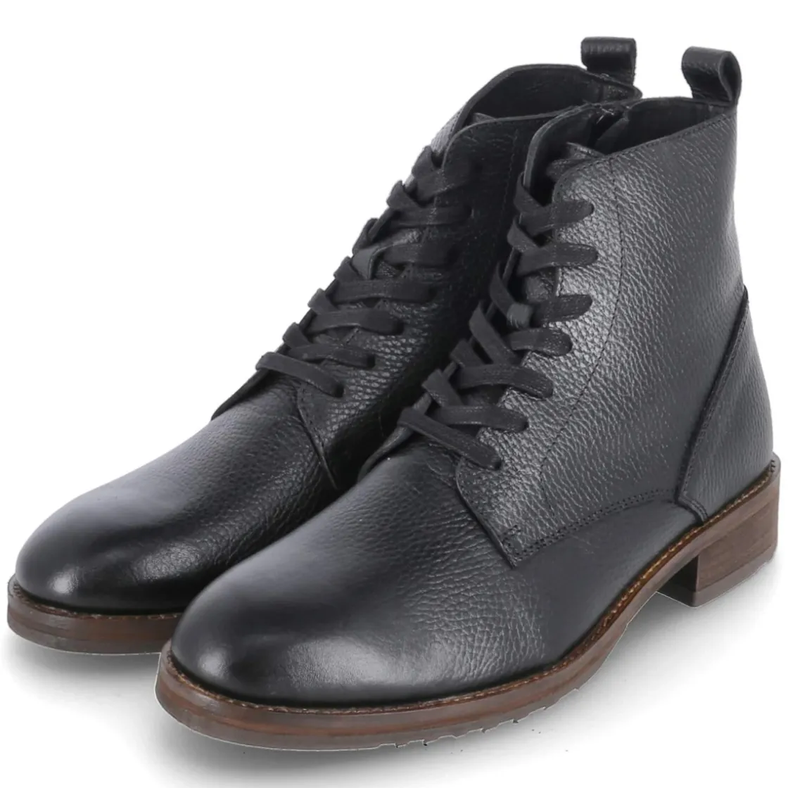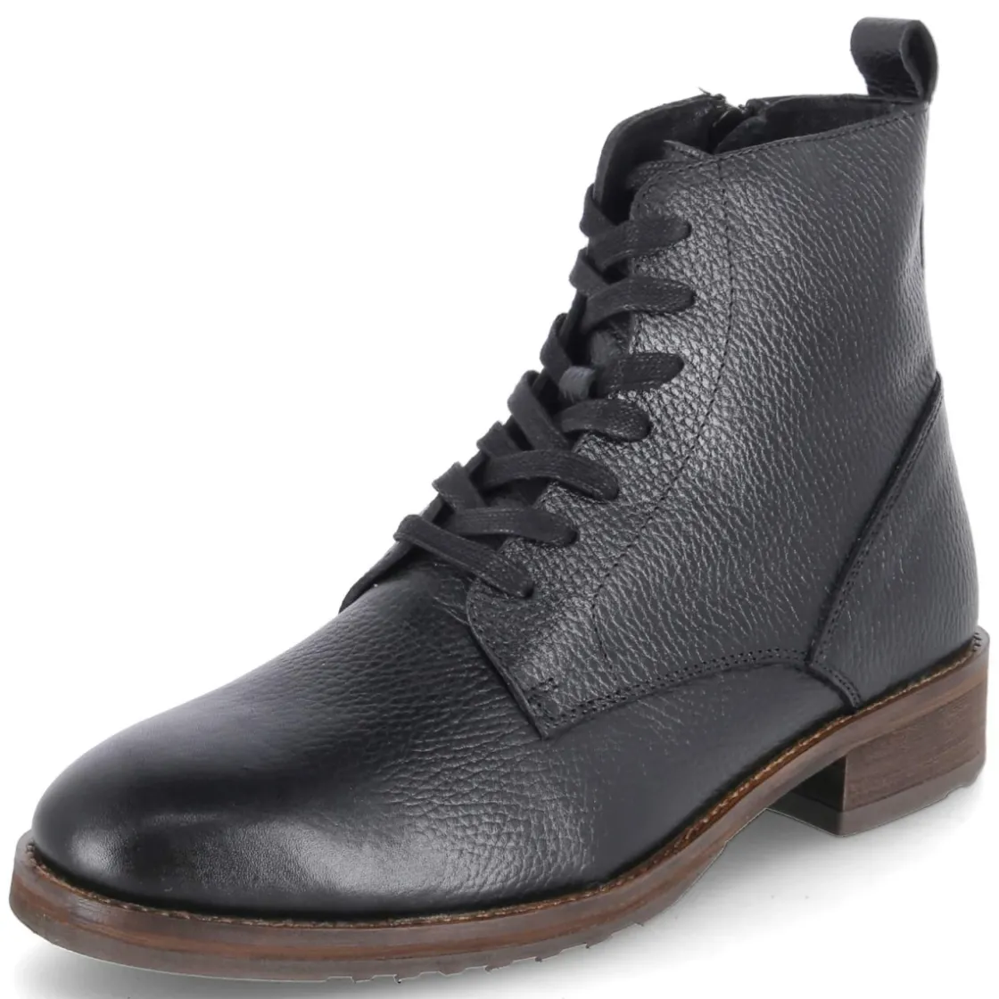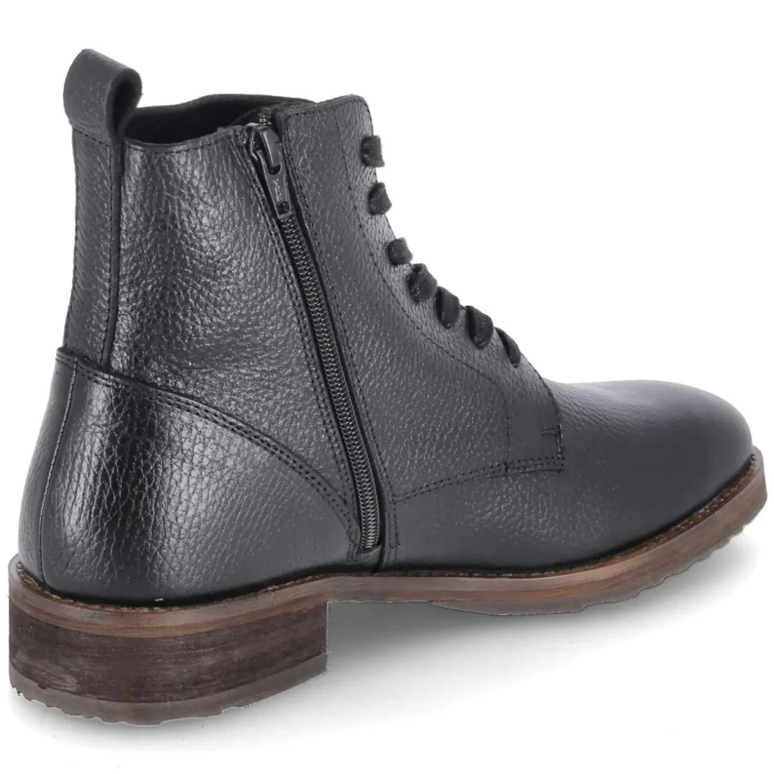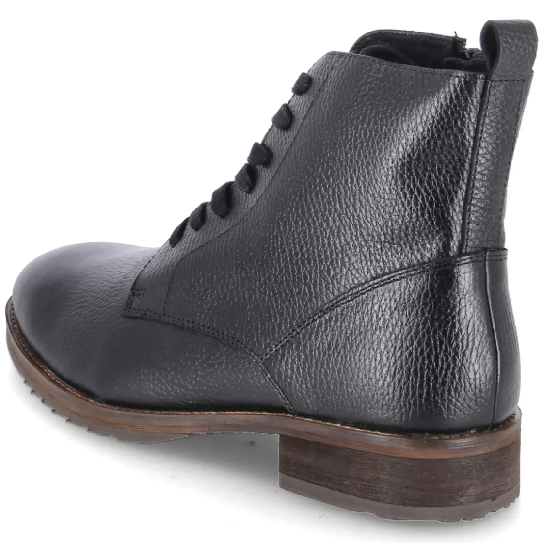 Der Kaerlek Herren-Boot in klassischem Schwarz vereint robuste Eleganz mit durchdachtem Komfort. Glattes, langlebiges Echtleder prägt den klaren Look, während die runde Spitze und der 3,5 cm hohe Blockabsatz eine souveräne Silhouette schaffen. Schnürung und zusätzlicher seitlicher Reißverschluss erleichtern den Einstieg, eine Anziehlasche unterstützt. Das gepolsterte Fußbett und die lederne Decksohle sorgen für angenehmes Klima, der verstärkte Fersenbereich für Stabilität. Eine flexible, rutschhemmende Laufsohle gibt verlässlichen Grip bei urbanen Wegen. Das Modell fällt schmaler aus und eignet sich besonders für schlankere Füße. Zeitlos kombinierbar vom Office bis zum Wochenend-Look, punktet dieser Boot mit langlebiger Verarbeitung und funktionalen Details. Modetipp: Zu Raw-Denim, Wollmantel in Kamel und schwarzem Ledergürtel entsteht ein moderner, cleaner City-Look.
