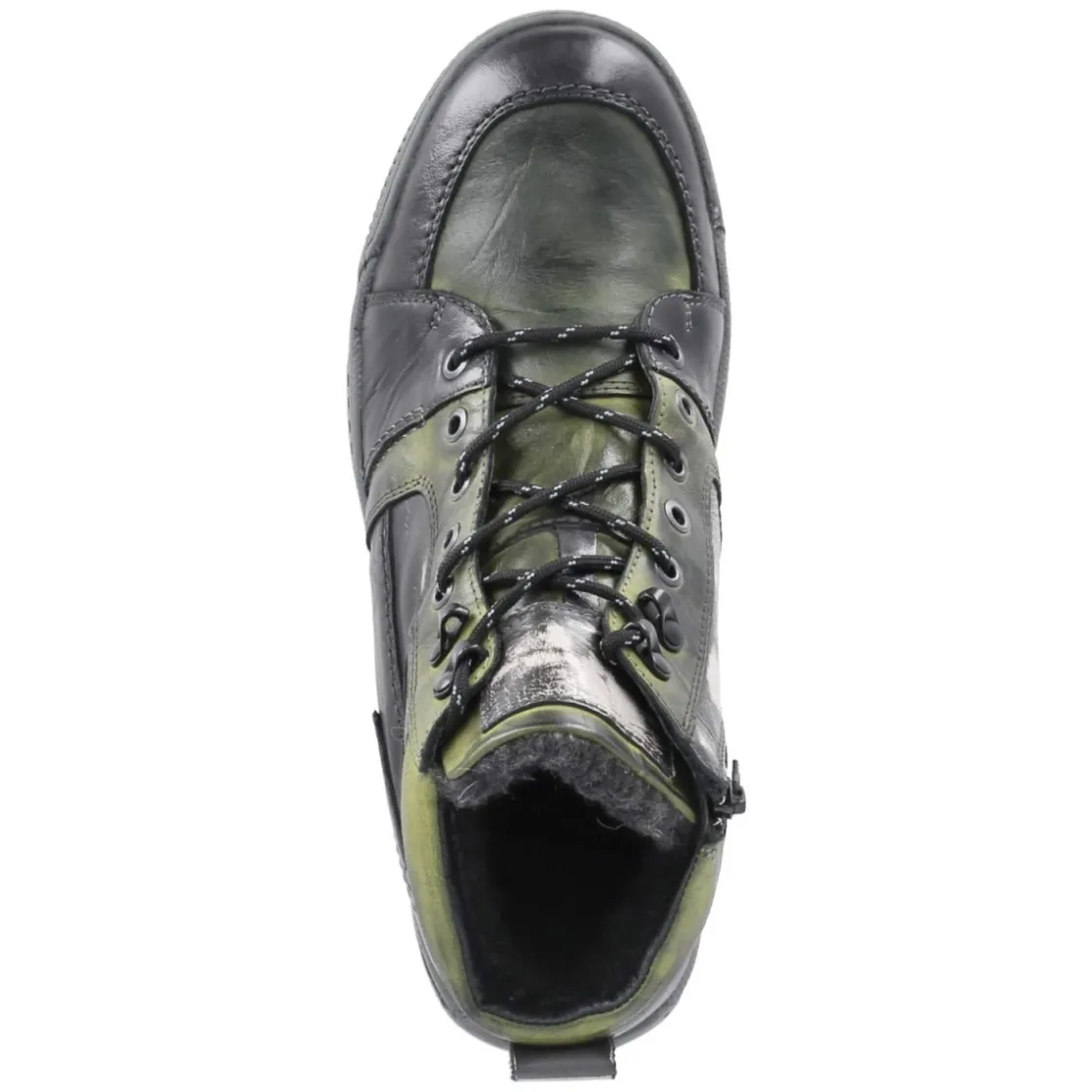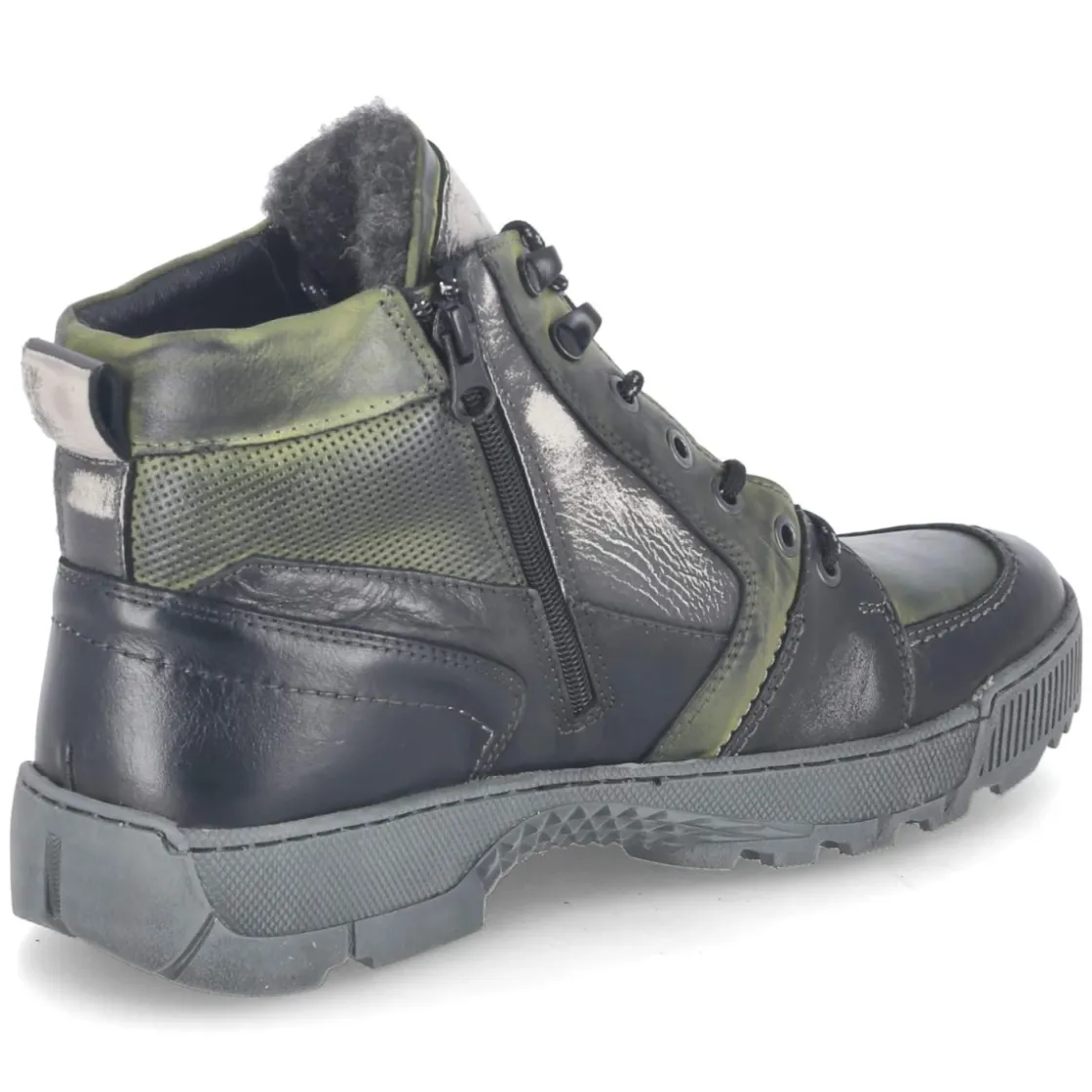 Kräftiges Grün trifft auf markante Used-Optik: Dieser Herren-Winterboot von Krisbut verbindet langlebiges Echtleder in glatter Ausführung mit einem warmen Futter, das an kalten Tagen verlässlich begleitet. Die runde Spitze, ein gepolsterter Einstieg und der verstärkte Fersen- sowie Zehenbereich sorgen für angenehmen Halt und spürbaren Wohlfühlfaktor. Schnürsenkel und praktischer Reißverschluss erleichtern das An- und Ausziehen, unterstützt von der Anziehlasche. Die flexible, rutschfeste Laufsohle gibt sicheren Grip, während Decksohle aus Textil und Wechselfußbett Komfort auf langen Wegen bieten. Der Schnitt fällt normal aus und passt ideal zu erwachsenen Füßen, die Wert auf Bequemlichkeit legen. Modetipp: Mit Cargo-Hose in Oliv und Wollsocken sowie einem Parka in Naturtönen entsteht ein stimmiges, urban-winterliches Outfit.