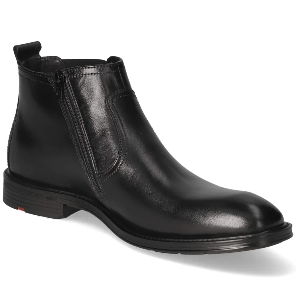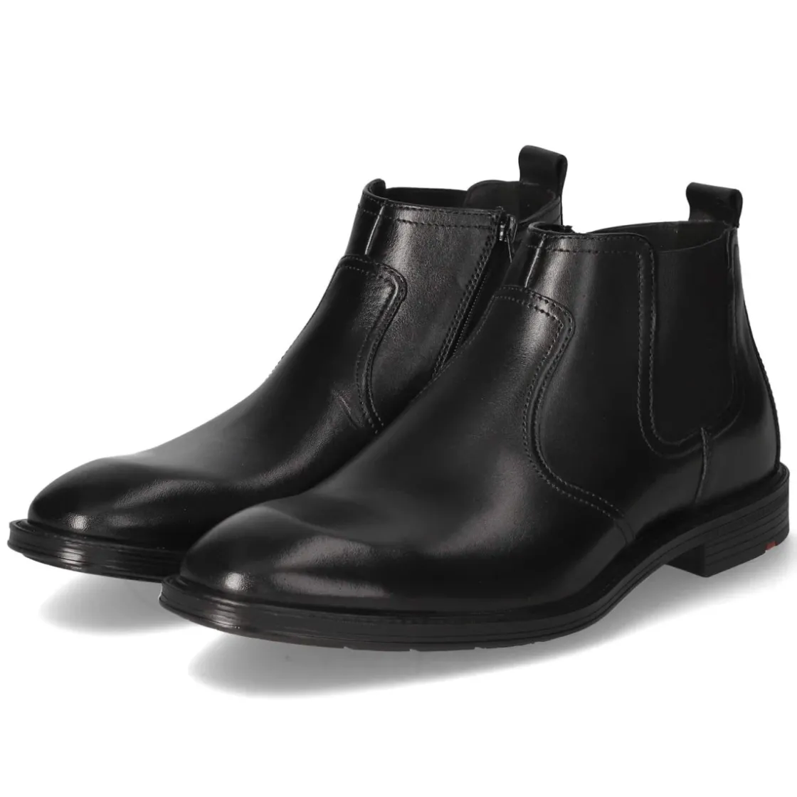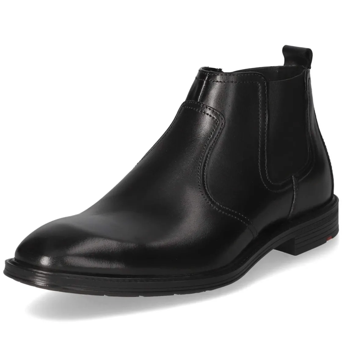 Der Chelsea Boot X-MOTION 315 von LLoyd interpretiert die klassische Silhouette in tiefschwarzem Glattleder mit souveräner Eleganz. Ein runder Leisten, dezente Ziernähte und der seitliche Elastikeinsatz am Schaft sorgen für zeitlose Linie und angenehme Flexibilität, während der Reißverschluss den Einstieg erleichtert. Die gepolsterte, herausnehmbare Decksohle auf Lederbasis erhöht den Komfort und lässt Raum für eigene Einlagen. Stabilität liefert der 3 cm hohe Blockabsatz in Kombination mit einer rutschhemmenden Laufsohle; die verstärkte Ferse unterstützt sicheren Halt im Alltag. Das langlebige Echtleder überzeugt durch eine wertige Haptik und macht den Boot zum verlässlichen Partner vom Büro bis zum After-Work. Fällt normal aus und richtet sich an erwachsene Herren, die Qualität schätzen. Modetipp: Zu schmaler Chino, Feinstrickpullover und Wollmantel entsteht ein smartes City-Outfit mit klarer Kante.