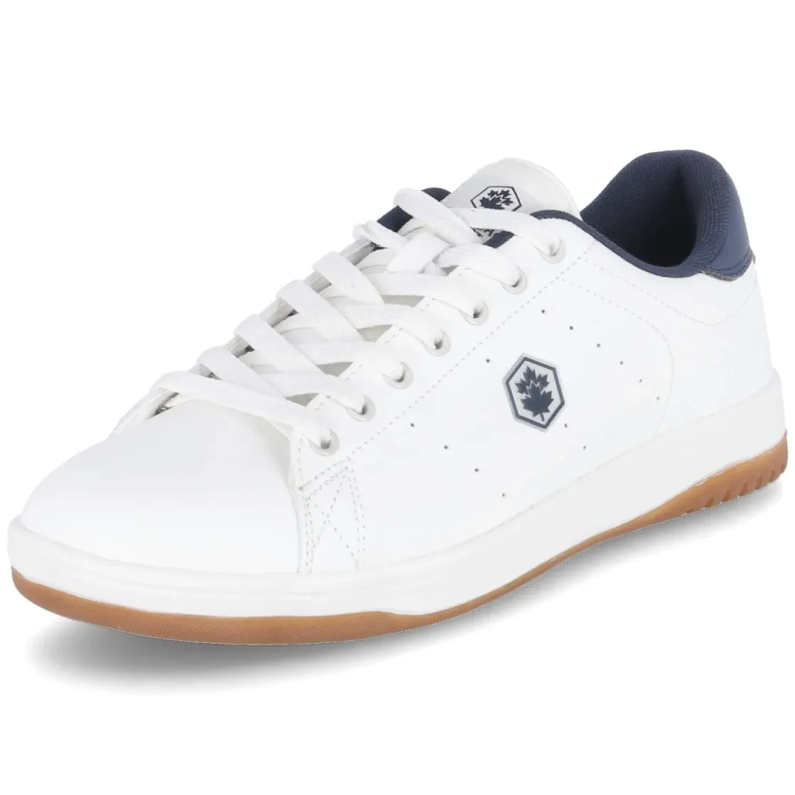 Der Low Sneaker REA von Lumberjack verbindet puristische Optik mit durchdachtem Komfort. Das weiße Obermaterial aus Synthetik präsentiert sich mit pflegeleichter Oberfläche und bleibt selbst im Alltag schnell wieder strahlend. Klassische Schnürung und runde Schuhspitze sorgen für eine zeitlose Silhouette, während die textile Decksohle und die beste Memory-Foam-Fußbettung sanft dämpfen und den Fuß angenehm umschließen. Ein verstärkter Fersenbereich und der gepolsterte Einstieg in Blau geben stabilen Halt und setzen einen dezenten Farbakzent. Feine Seitenlochungen unterstützen ein angenehmes Fußklima, die flexible, rutschhemmende Laufsohle bietet verlässlichen Grip. Der Sneaker fällt normal aus und überzeugt mit hervorragenden Kombinationsmöglichkeiten von sportlich bis smart casual. Modetipp: Ton-in-Ton zu weißen Socken und krempelbarer Chino tragen, das Blau am Einstieg mit einer leichten Navy-Jacke aufnehmen.