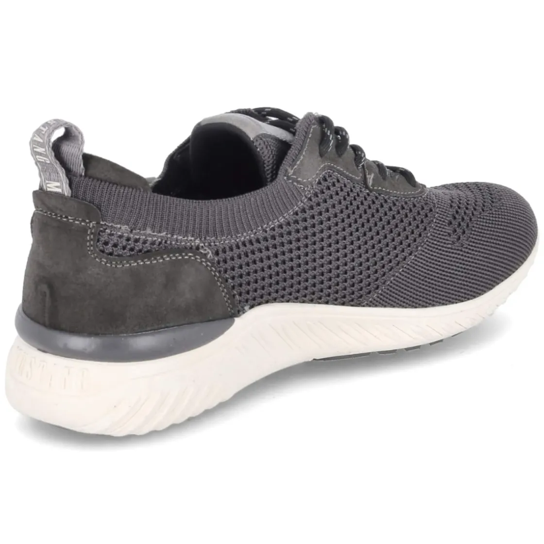 Der Low Sneaker von Mustang präsentiert sich in zeitlosem Grau und vereint sportlichen Look mit hohem Tragekomfort. Das Obermaterial aus Textil und Synthetik mit luftiger Mesh-Oberfläche und dezent gelochtem Muster sorgt für angenehme Belüftung, während der gepolsterte Einstieg und das weich gepolsterte Fußbett den Wohlfühlfaktor unterstreichen. Eine runde Schuhspitze, die klassische Schnürung sowie der verstärkte Fersenbereich garantieren sicheren Halt. Die flexible, griffige Laufsohle spielt ihre Stärken im Alltag aus und macht den Herrensneaker zum zuverlässigen Begleiter. Dank normaler Passform und Wechselfußbett lässt sich bei Bedarf eine eigene Einlage nutzen, ohne auf Komfort zu verzichten. Typische Markendetails runden das Modell stilsicher ab. Modetipp: Mit schmaler Denim, aufgekrempeltem Saum und einem leichten Strickpullover entsteht ein moderner Casual-Look, der vom Büro bis ins After-Work unkompliziert funktioniert.