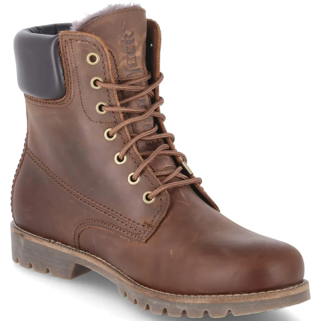Der Herren-Boots PNAMA 03 IGLOO C11 von Panama Jack verbindet rustikales Design mit funktionaler Wintertauglichkeit. Schafsleder in glatter Ausführung verleiht dem braunen Obermaterial eine langlebige, markante Anmutung, während das warme Lammfellfutter und die lederne Decksohle ein behagliches Klima mit Wohlfühlfaktor schaffen. Dank wasserfester, zugleich atmungsaktiver Ausrüstung und flexibler, rutschfester Profilsohle bleibt der Fuß auch bei nassem Untergrund geschützt und sicher geführt. Die rund gearbeitete Kappe, der 3 cm hohe Blockabsatz sowie der gepolsterte Einstieg erhöhen den Tragekomfort; ein Wechselfußbett unterstützt individuelle Einlagen. Der schmal ausfallende Leisten macht die Empfehlung sinnvoll, eine Nummer größer zu wählen. Schnürsenkelverschluss und gelabelte Details runden das Gesamtbild ab. Modetipp: Zu Raw-Denim und grob gestricktem Wollpullover entsteht ein authentischer Outdoor-Look, der urban wie alpin überzeugt.