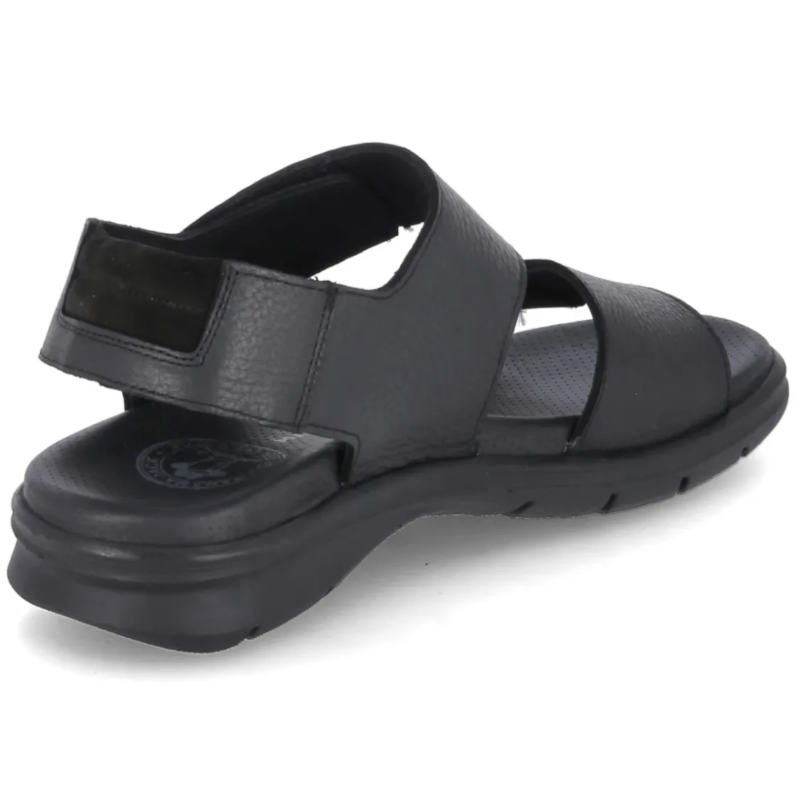 Panama Jack präsentiert mit den Sandalen RUSSEL C1 einen verlässlichen Begleiter für warme Tage. Das Obermaterial aus Glattleder überzeugt durch langlebiges Echtleder, während ein hautfreundliches Lederfutter für angenehmes Fußklima sorgt. Zwei breite Riemen mit praktischen Klettverschlüssen erlauben schnelle Anpassungen, ergänzt durch einen Riemen mit Fersenpolster für zusätzlichen Halt. Die leicht vorgeformte, weiche Lederdecksohle unterstützt den Fuß komfortabel, die flexible Laufsohle gewährleistet ein natürliches Abrollen. Offene Schuhspitze und die markentypisch solide Verarbeitung unterstreichen den funktionalen Anspruch. In zeitlosem Schwarz und mit normal ausfallender Passform eignet sich dieses Herrenmodell für Alltag und Reise gleichermaßen. Modetipp: Mit Leinenhemd und schmalen Chino-Shorts wirkt der Look lässig und zugleich gepflegt.