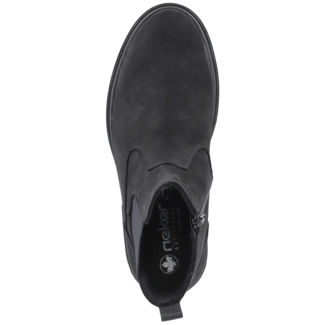 Der klassische Herren-Chelsea von Rieker zeigt sich in tiefschwarzem Rauleder und verbindet langlebiges Echtleder mit modernem Komfort. Ohne Verschluss, mit beidseitigem Elastikeinsatz und praktischer Anziehlasche gelingt das Hineinschlüpfen mühelos. Eine runde Spitze, die Lederdecksohle sowie ein gepolstertes, herausnehmbares Fußbett sorgen für angenehm gedämpfte Schritte, der verstärkte Fersenbereich und die flexible, rutschfeste Laufsohle geben Halt im Alltag. Das leichte Futter wärmt an kühlen Tagen, während die Passform normal ausfällt und erwachsene Träger zuverlässig begleitet. Souverän zu Business wie Freizeit, reduziert im Design und vielseitig kombinierbar. Modetipp: Mit dunkler Slim-Fit-Jeans, Rollkragenpullover und kamelfarbenem Wollmantel entsteht ein zeitloser City-Look.