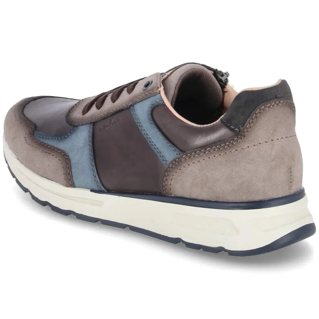 Dieser Low Sneaker von Rieker in warmem Braun verbindet sportliche Linien mit alltagstauglicher Robustheit. Der Material-Mix aus Leder und Synthetik sorgt für eine wertige Haptik und Strapazierfähigkeit, blaue Elemente setzen dezente Akzente. Die runde Schuhspitze und der gepolsterte Einstieg erhöhen den Tragekomfort, die textile Decksohle und das komfortable Wechselfußbett bieten ein angenehmes Fußklima und lassen sich bei Bedarf anpassen. Dank Schnürsenkeln und zusätzlichem Reißverschluss gelingt der Einstieg schnell, die flexible, rutschhemmende Laufsohle gibt sicheren Halt. Verstärkter Zehen- und Fersenbereich und das zurückhaltende Branding runden das Design ab. Der Größenhinweis fällt normal aus und richtet sich an Herren in der Erwachsenengröße. Modetipp: Mit dunkelblauer Chino und naturweißem Henley entsteht ein legerer Look, alternativ mit Raw Denim und Wolljacke in Navy.