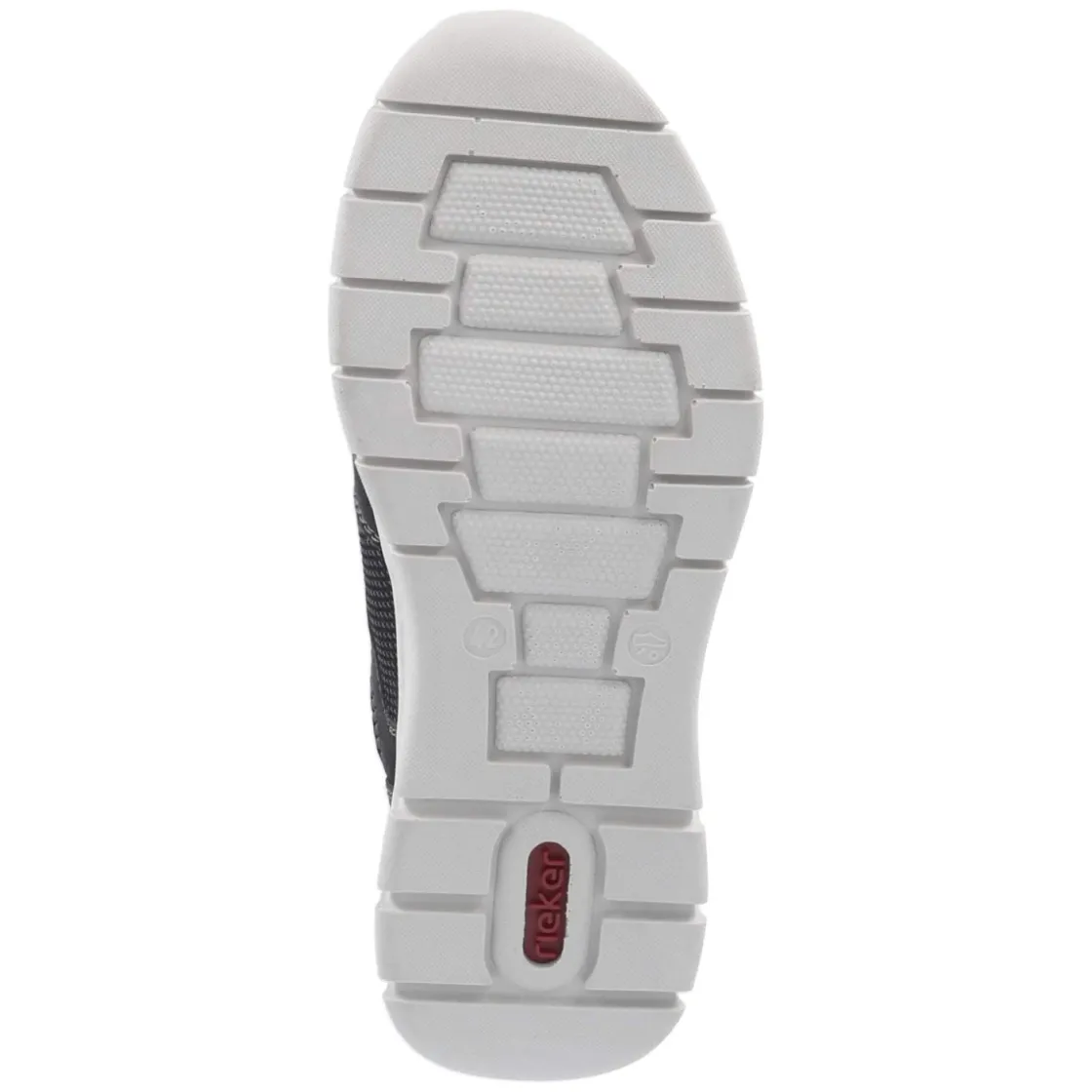 Dieser Herren-Sneaker von Rieker verbindet sportliche Leichtigkeit mit alltagstauglichem Komfort. Das Obermaterial aus Textil und Synthetik zeigt vorn eine elegante Strick-Optik, die mit dem Elastikband in Schnüroptik eine dynamische Note erhält. Durch den unkomplizierten Einstieg ohne klassischen Verschluss ist der Schuh im Handumdrehen angezogen, während der gepolsterte Einstieg und das weich gepolsterte Fußbett lang anhaltende Bequemlichkeit sichern. Die runde Schuhspitze schafft Bewegungsfreiheit, ein verstärkter Fersenbereich erhöht die Stabilität. Eine flexible, rutschhemmende Laufsohle sorgt für verlässlichen Grip auf urbanem Terrain. Gelabelte Details unterstreichen den modernen Material-Mix. Fällt der Größe entsprechend normal aus. Modetipp: Zu schwarzer Slim-Fit-Jeans und Bomberjacke entsteht ein puristischer Monochrom-Look mit sportivem Finish.