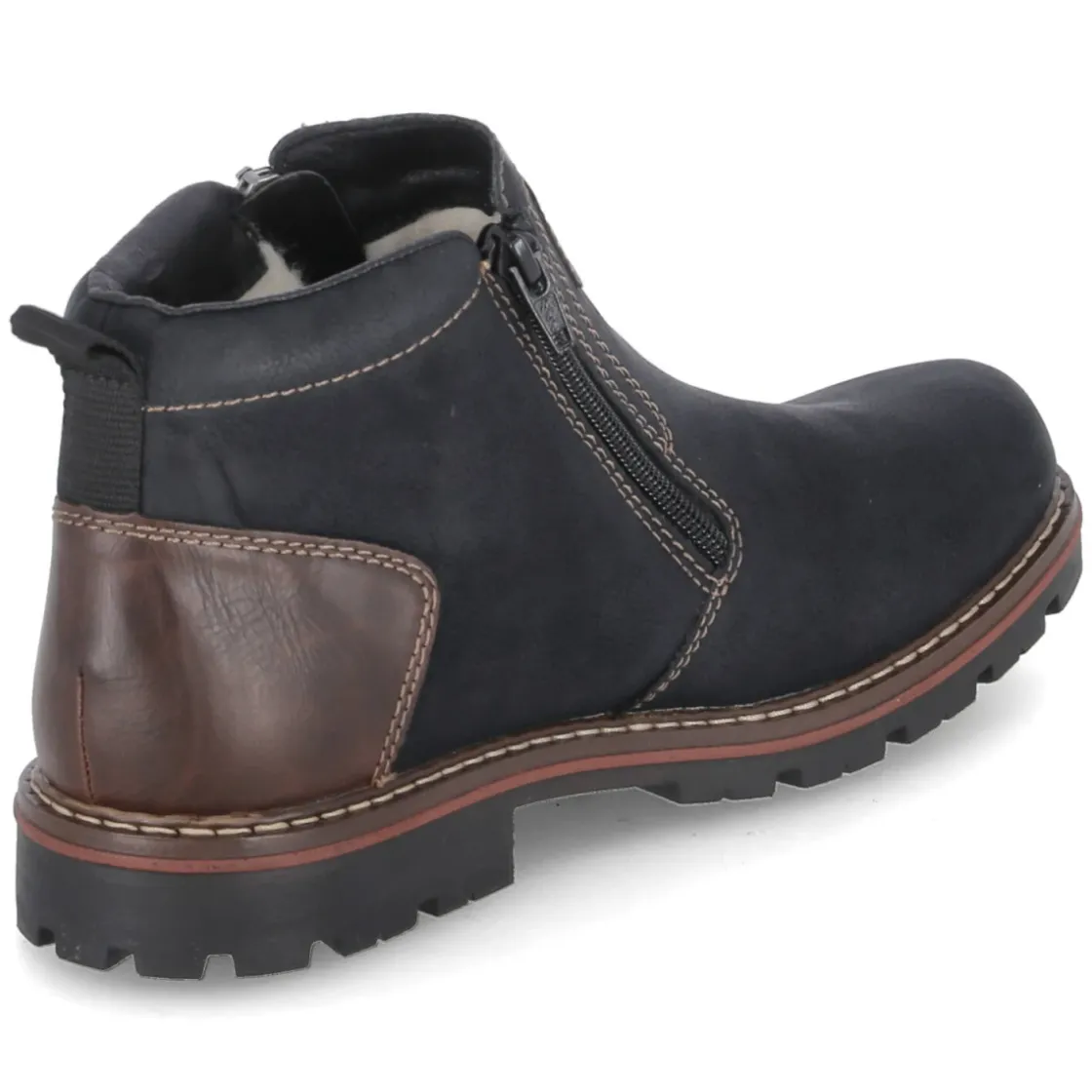 Diese Herren-Winterboots von Rieker verbinden funktionalen Wetterschutz mit urbanem Stil. Das schwarze Obermaterial aus strapazierfähigem Kunstleder wirkt zeitlos und lässt sich vielseitig kombinieren, während warmes Futter an frostigen Tagen zuverlässig wärmt. Wasserfest und zugleich wasserabweisend konstruiert, bleibt der Fußbereich vor Nässe geschützt, die atmungsaktive Ausstattung unterstützt ein angenehmes Klima. Die runde Spitze gewährt Zehenfreiheit, die textile Decksohle sorgt für sanften Komfort. Ein 3 cm hoher Blockabsatz bietet stabilen Halt auf winterlichen Wegen, unterstützt von einer griffig profilierten Laufsohle. Praktische Reißverschlüsse erleichtern das An- und Ausziehen und sichern den Sitz. Fällt normal aus und eignet sich für den Alltag ebenso wie für den Weg ins Büro. Modetipp: Mit dunkler Denim, Grobstrickpullover und Parka entsteht ein unkomplizierter, winterfester Look.