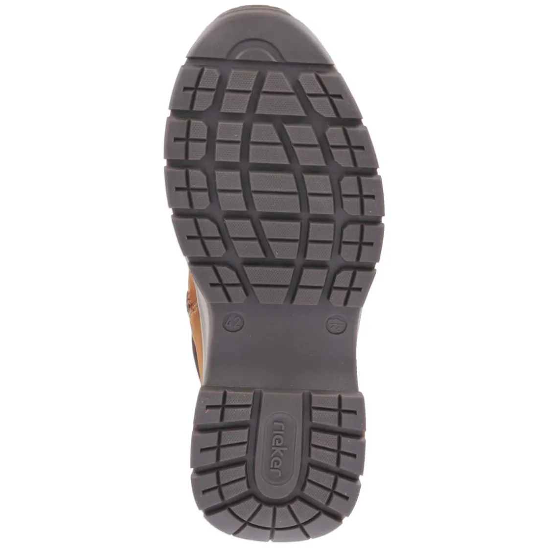 Robust und komfortorientiert präsentiert sich der Rieker Winterboot in warmem Braun. Das Obermaterial aus Leder und Synthetik vereint strapazierfähige Stabilität mit angenehmer Haptik, während das weiche Warmfutter zuverlässig durch kalte Tage begleitet. Schnürung und seitlicher Reißverschluss erleichtern den Einstieg, der zusätzlich gepolstert ist. Die runde Spitze bietet Zehenfreiheit, das gepolsterte, atmungsaktive Wechselfußbett steigert den Tragekomfort. Für Trittsicherheit sorgt die rutschhemmende Laufsohle, der verstärkte Fersenbereich stabilisiert bei jedem Schritt. Wasserfest und zugleich atmungsaktiv konstruiert, bleibt das Klima im Schuh ausgewogen, selbst bei unbeständigem Wetter. Der Fit fällt normal aus und das dezente Branding unterstreicht die markentypische Wertigkeit. Modetipp: Mit Raw-Denim, grobem Strickpullover und Wollmantel entsteht ein urbaner Winterlook, der Funktion und Stil lässig verbindet.