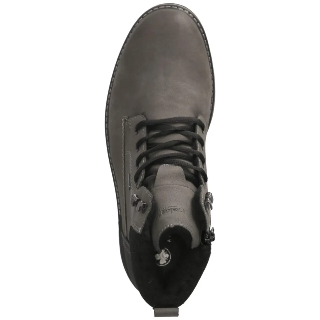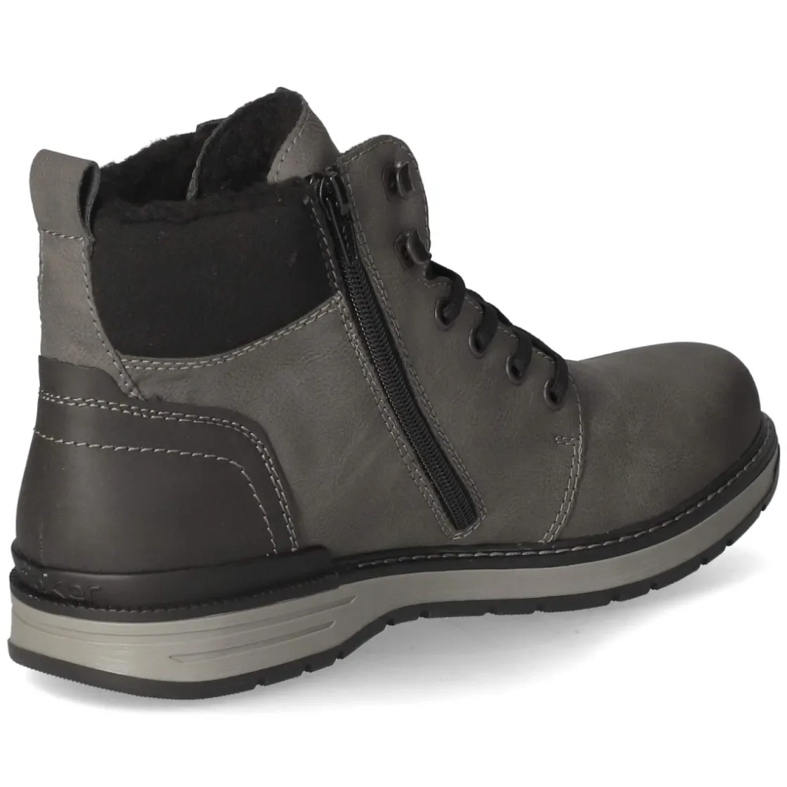 Der Herren-Winterboot von Rieker verbindet Alltagstauglichkeit und gepflegte Optik: Das graue Obermaterial aus Synthetik zeigt sich mit pflegeleichter Oberfläche, während das Warmfutter zuverlässig für behagliche Temperaturen sorgt. Die rutschhemmende Laufsohle bietet Trittsicherheit auf nassen Wegen, die verstärkte Ferse stabilisiert. Schnürsenkel und seitlicher Reißverschluss erleichtern das An- und Ausziehen, unterstützt von Anziehlasche und Schaftrand in Textiloptik. Das gepolsterte Fußbett und die textile Decksohle erhöhen den Komfort im Büro und auf dem Weg dorthin. Die runde Spitze schafft ausreichend Zehenfreiheit, der Schnitt fällt normal aus. Wasserabweisende Eigenschaften schützen vor Spritzwasser, dezente Markendetails runden das Design ab. Modetipp: In Kombination mit Wollchino, Stricksocken in Melange und einem schlichten Kurzmantel entsteht ein moderner Business-Casual-Look.