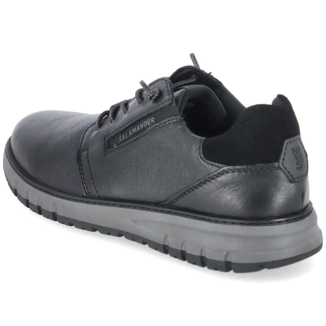 Der klassische Herren-Halbschuh von Salamander verbindet zeitlose Optik mit verlässlichem Komfort. Schwarzes Glattleder und eine runde Spitze sorgen für eine elegante, vielseitige Silhouette, die im Büro wie in der Freizeit überzeugt. Die verstärkte Ferse stabilisiert jeden Schritt, während der gepolsterte Einstieg Druckstellen vorbeugt. Eine bequeme Elastikschnürung und ein schmaler Elastikeinsatz seitlich des Spanns erleichtern das An- und Ausziehen und optimieren den Sitz. Die Decksohle aus Leder und das komfortable, herausnehmbare Fußbett bieten angenehme Dämpfung und lassen Raum für eigene Einlagen. Auf nassem Pflaster gibt die rutschfeste Laufsohle zusätzliche Sicherheit. Der Schuh fällt normal aus und zeigt die gewohnt hochwertige Verarbeitung der Marke. Modetipp: Zu schmalen Chinos und einem Oxford-Hemd entsteht ein smartes Alltagsoutfit.