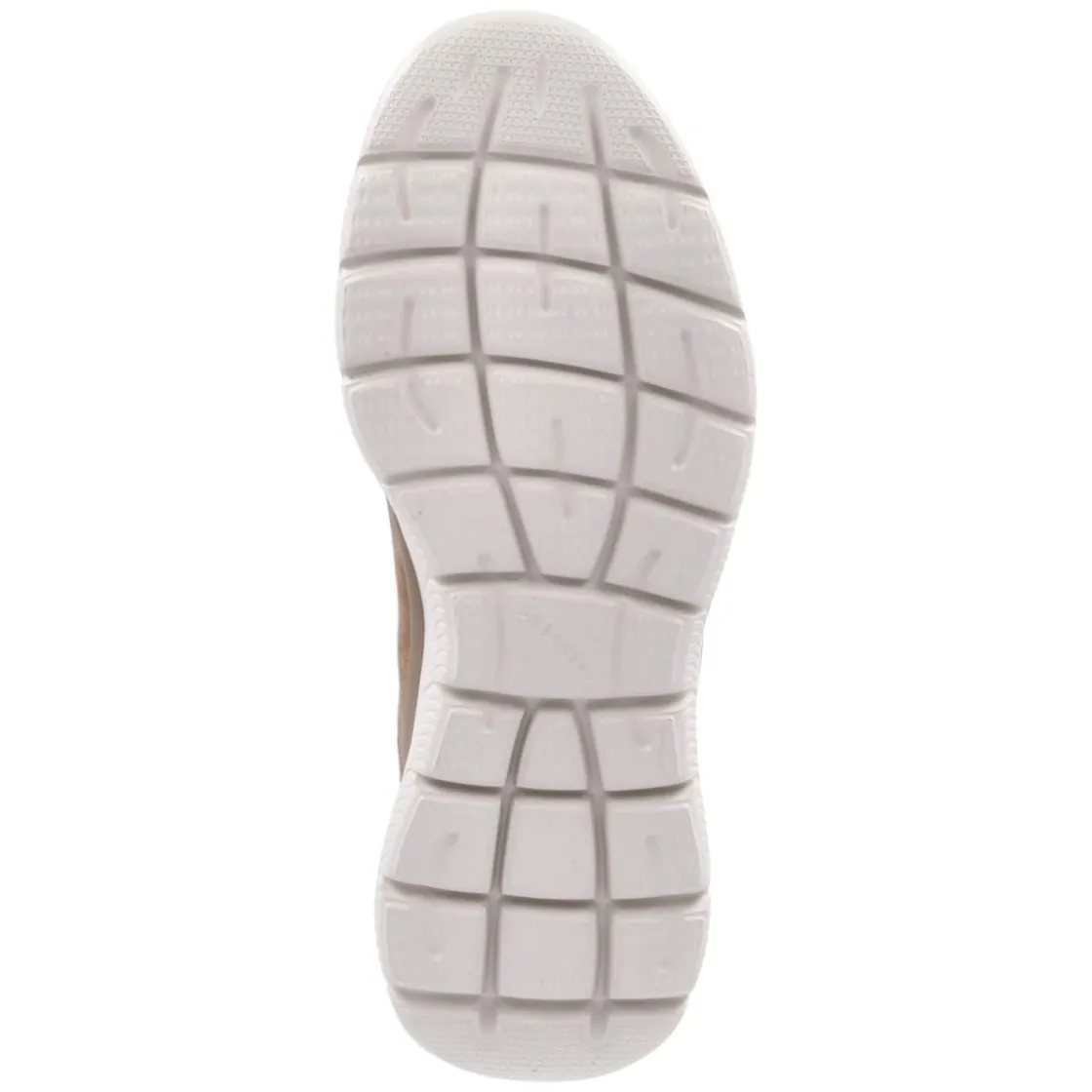 Der Skechers Slip-Ins SUMMITS-KORLO setzt auf unkomplizierten Komfort in zeitlosem Braun. Das textile Obermaterial in feiner Lederoptik wirkt gepflegt, während das Elastikband in Schnüroptik den sportiven Look unterstreicht und den bequemen Einstieg ohne Verschluss ergänzt. Die runde Schuhspitze und die normale Passform sorgen für entspanntes Tragen im Alltag. Highlight ist die beste Memory-Foam-Fußbettung, die sich dem Fuß anpasst und gemeinsam mit dem relaxten Leichtgewicht ein angenehm federndes Laufgefühl erzeugt. Die flexible, rutschfeste Laufsohle bietet zuverlässigen Halt auf unterschiedlichen Untergründen, zudem ist der Schuh maschinenwaschbar – ideal für schnelle Pflege. Aus veganen Materialien gefertigt und damit eine moderne Wahl für Herren, die Wert auf zeitgemäßen Stil legen. Modetipp: Mit sandfarbener Chino und Strickpolo entsteht ein smart-casual Look mit sportivem Twist.