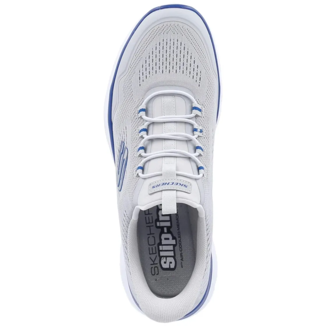 Der Skechers Slip-Ins SUMMITS TOP RATE setzt auf unkomplizierten Komfort mit sportlicher Note. Das graue Design mit blauen Highlights trifft auf eine luftige Meshoberfläche aus Textil und Synthetik, gefertigt aus veganen Materialien. Dank Slip-Ins-Konstruktion und Elastikband in Schnüroptik gelingt das Anziehen ohne Verschluss im Handumdrehen. Das beste Memory-Foam-Fußbett passt sich weich an, während das relaxt leichte Tragegefühl auch längere Tage angenehm macht. Eine flexible, rutschfeste Laufsohle sorgt für Grip, verstärkte Fersen- und Zehenbereiche bieten zusätzlichen Schutz. Die runde Spitze und die textile Decksohle unterstreichen den entspannten Charakter. Fällt normal aus und ist waschmaschinengeeignet – praktisch für den Alltag. Modetipp: Ton-in-Ton mit grauer Tech-Jogpant und navyfarbener Softshelljacke kombinieren, dazu Sportsocken mit blauen Akzenten für einen harmonischen Athleisure-Look.