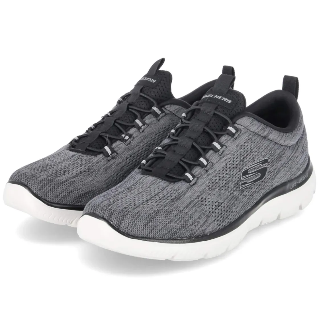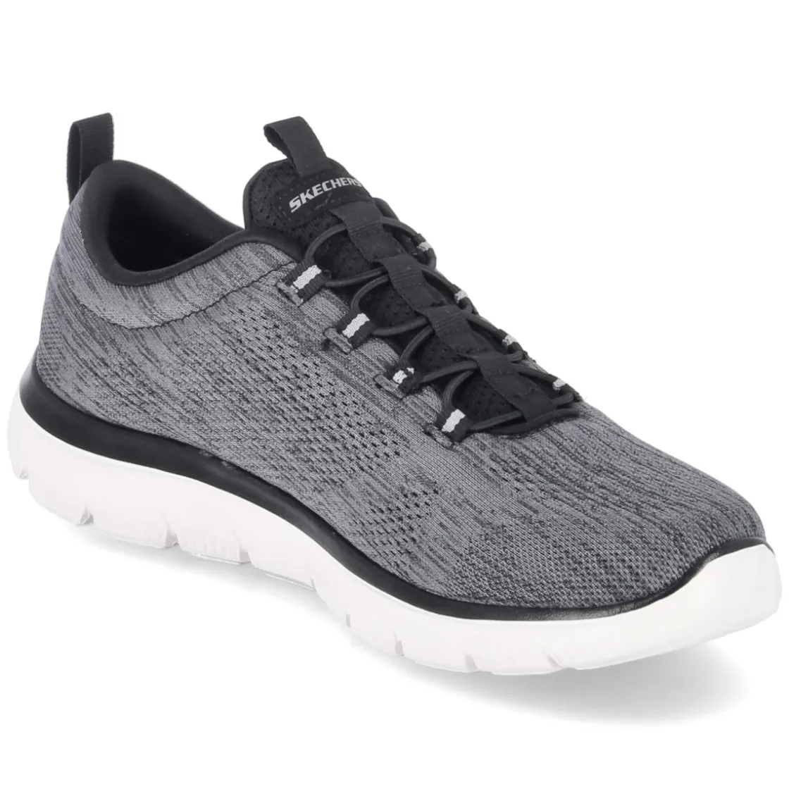 Der Slip-On-Sneaker SUMMITS von Skechers bringt entspannten Komfort in den Alltag. Das melierte Grau und typische Markendetails verleihen dem cleanen Design Tiefe, während Elastikbänder in Schnüroptik und zwei Anziehlaschen den unkomplizierten Einstieg erleichtern. Weiches Textil als Obermaterial und Decksohle schmiegt sich angenehm an, die gepolsterte Öffnung dämpft Druckstellen. Das bewährte Memory-Foam-Fußbett federt jeden Schritt sanft ab, die flexible, rutschhemmende Profilsohle sorgt für Halt auf urbanem Terrain. Mit runder Spitze und normaler Passform eignet sich das Modell ideal für Beruf, Reise und Freizeit. Waschmaschinengeeignet für frische Leichtigkeit im Handumdrehen. Modetipp: Zur schmalen Chino und einem leichten Strickpullover kombinieren und mit einer minimalistischen Bomberjacke abrunden – so entsteht ein smarter, sportiver Look.