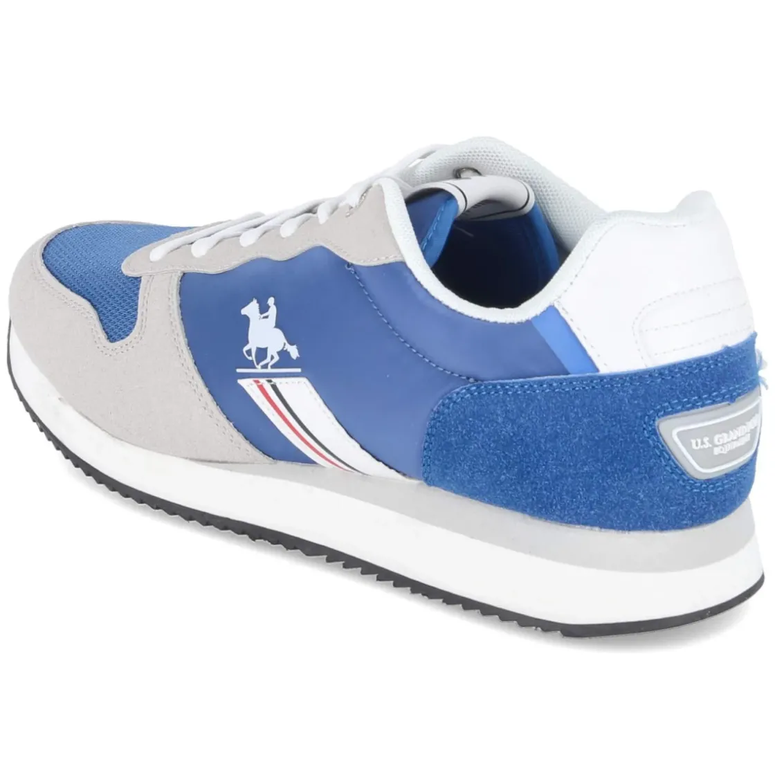 Der Sneaker WILLY von U.S. Grand Polo vereint sportliche Lässigkeit und klare Linien in einem zeitgemäßen Auftritt. Das Obermaterial aus Textil und Synthetik setzt auf einen modernen Material-Mix, während der blaue Grundton durch graue Elemente, Seitenstreifen und feine Markendetails strukturiert wird. Die runde Schuhspitze und der klassische Schnürverschluss sorgen für eine angenehme Passform, die größengetreu ausfällt. Für zusätzlichen Komfort stehen ein gepolsterter Einstieg sowie der verstärkte Fersen- und Zehenbereich. Das herausnehmbare Wechselfußbett unterstützt individuellen Tragekomfort und erleichtert die Pflege. Dank der ruhigen Farbgebung eröffnen sich zahlreiche Kombinationsmöglichkeiten vom Casual-Look bis hin zu smarten Freizeit-Outfits. Modetipp: Mit Slim-Jeans, weißem T-Shirt und einem leichten Blouson entsteht ein souveräner City-Style, den ein passender Ledergürtel harmonisch abrundet.