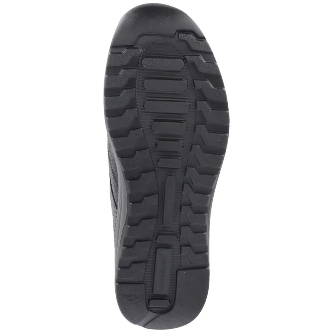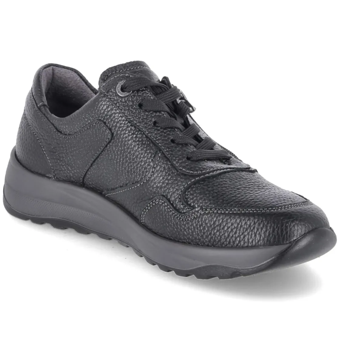 Der Low Sneaker K-JOHN von Waldläufer zeigt, wie komfortorientiertes Design und zurückhaltende Ästhetik zusammenfinden. Schwarzes, robustes Echtleder bildet das Obermaterial und verleiht dem Herrensneaker eine wertige Haptik sowie hohe Langlebigkeit. Eine runde Schuhspitze sorgt für angenehme Zehenfreiheit, während die Decksohle aus Leder ein ausgeglichenes Fußklima unterstützt. Das komfortable Wechselfußbett ermöglicht den Einsatz eigener Einlagen und steigert die Alltagstauglichkeit merklich. Praktisch ist die Kombination aus Schnürung und zusätzlichem Reißverschluss: einmal optimal geschnürt, gelingt das An- und Ausziehen schnell und bequem. Der Schnitt fällt normal aus und bietet zuverlässigen Halt bei täglichen Wegen in Stadt und Büro. Modetipp: In Kombination mit einer dunklen Chino und einem Feinstrickpullover entsteht ein smarter, urbaner Look, der die klare Linie des Sneakers betont.