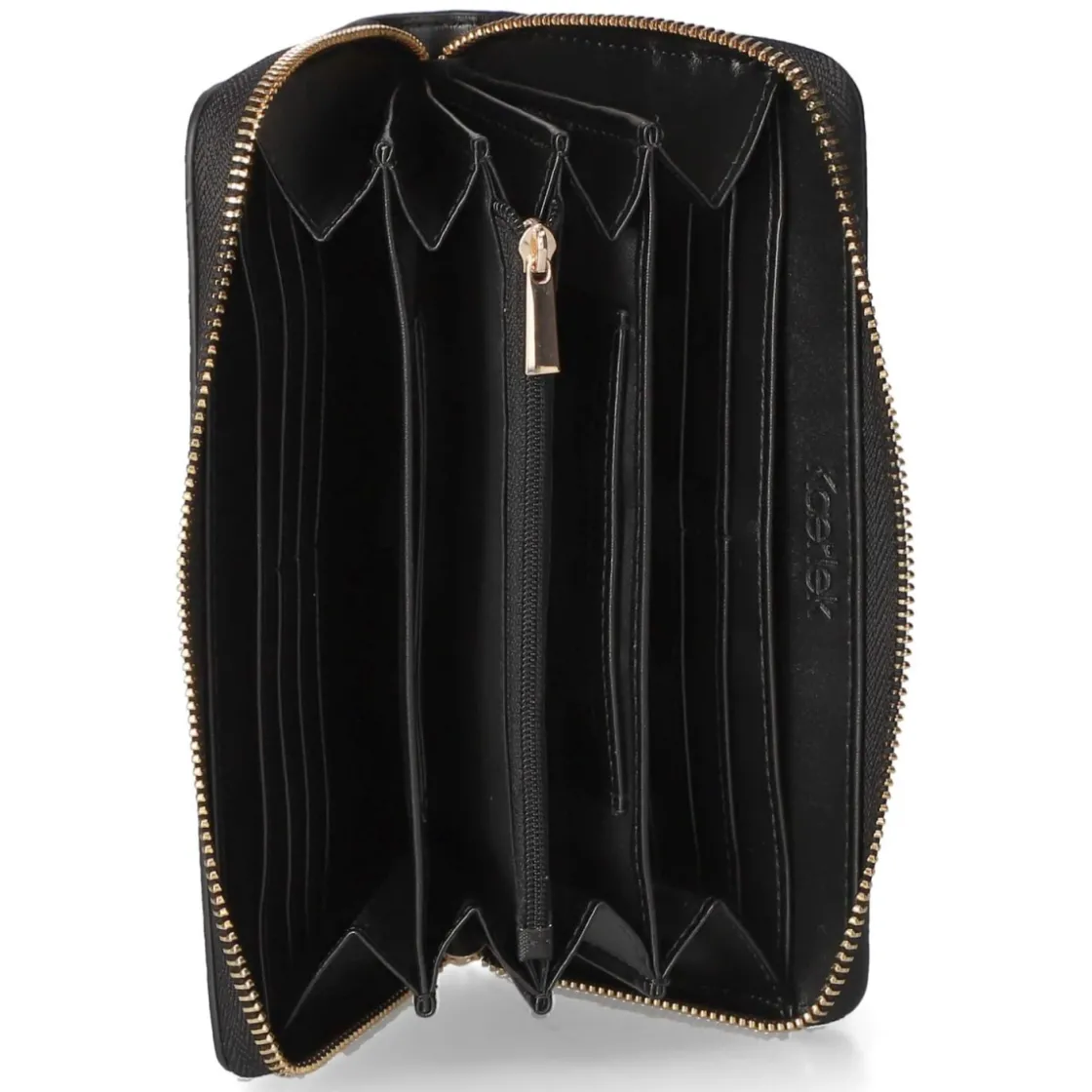 Zeitlose Eleganz trifft auf durchdachte Funktion: Diese Damen-Geldbörse in klassischem Schwarz überzeugt mit kompakten Maßen von ca. 10 x 19 x 3 cm und einem sicheren Reißverschluss rundum. Der goldene Markenschriftzug mit passenden Akzenten setzt einen edlen Kontrast und macht das Accessoire alltagstauglich wie abendtauglich. Außen sorgt ein Reißverschlussfach für schnellen Zugriff auf Kleinigkeiten. Innen wartet eine perfekt organisierte Aufteilung mit 16 Kartenfächern, einem Steckfach mit Sichtfenster für Ausweis oder Foto, einem separaten Reißverschlussfach für Münzen sowie zwei Geldscheinfächern. Hochwertige Verarbeitung und ein griffiges Finish unterstreichen den stilvollen Charakter. Modetipp: Die Kombination mit einer schwarzen Crossbody-Bag und goldenen Schmuck-Highlights schafft ein harmonisches Ensemble, das sowohl zum Business-Blazer als auch zum minimalistischen Midikleid überzeugt.