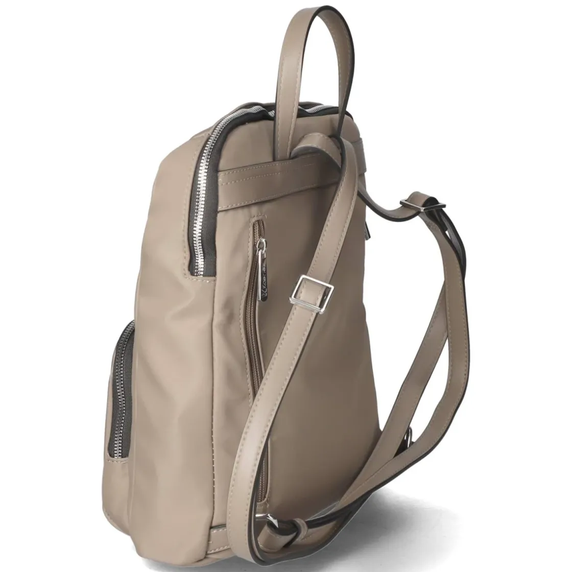 Dieser graue Damen-Rucksack verbindet klare Linien mit durchdachter Funktion. Mit kompakten Maßen von ca. 30 x 27 x 7 cm und einem Volumen von etwa 5 Litern begleitet er souverän durch den Tag, ohne aufzutragen. Außen sorgen eine Fronttasche mit Magnetverschluss sowie jeweils ein Reißverschlussfach vorne und hinten für schnellen Zugriff. Zwei kleine Seitentaschen ergänzen den Stauraum ideal. Innen überzeugt die kluge Aufteilung mit Steckfach, einem zusätzlichen Reißverschlussfach und einem gepolsterten Rückenfach in Laptopgröße. Verstellbare Tragegurte bis ca. 85 cm und ein verstärkter Boden geben Komfort und Formstabilität. Das vielseitige Grau harmoniert mühelos mit Business- und Casual-Looks. Modetipp: Zu Trenchcoat, Feinstrick und weißen Sneakern entsteht ein zeitlos-moderner City-Style.